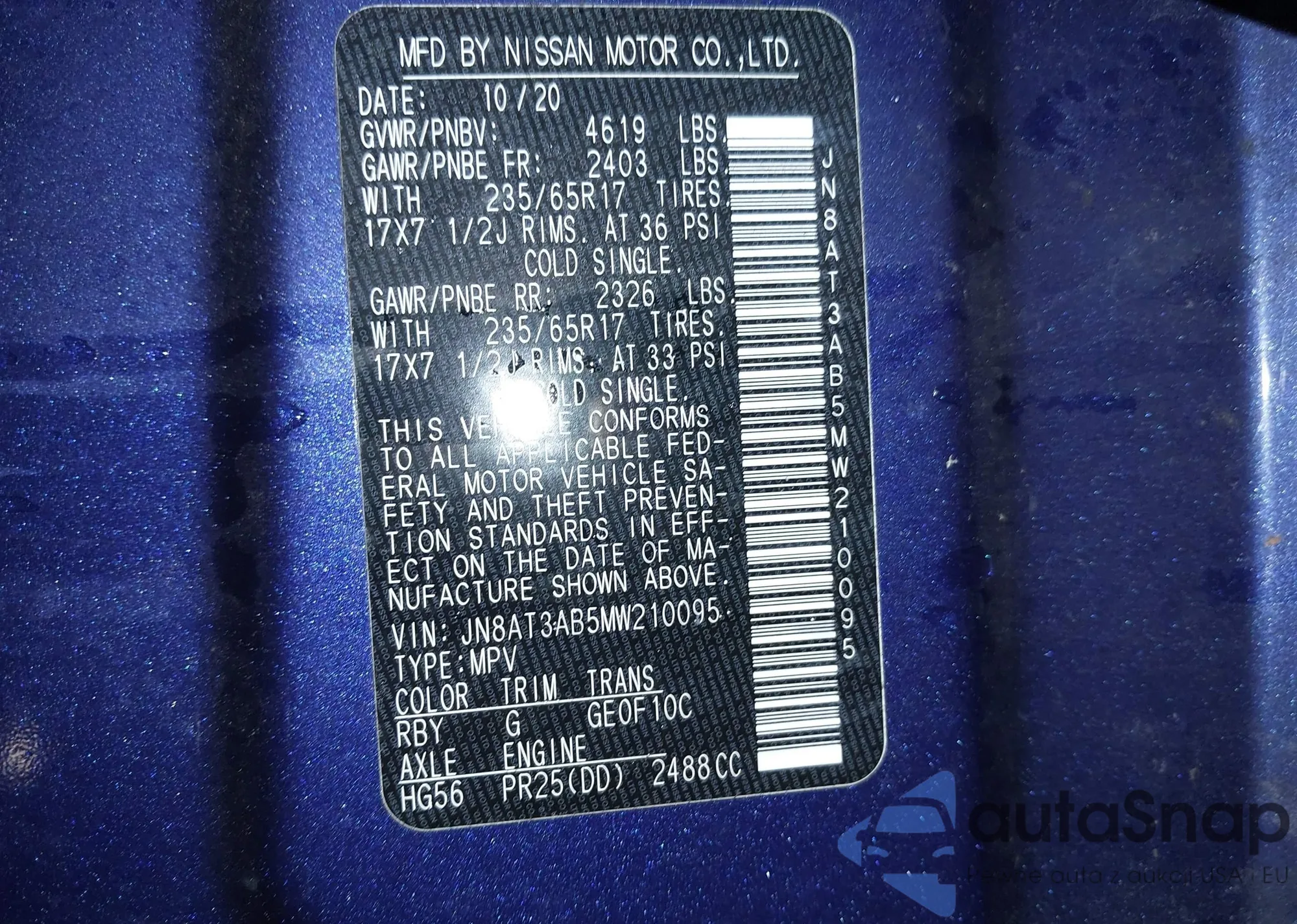 VIN: JN8AT3AB5MW210095