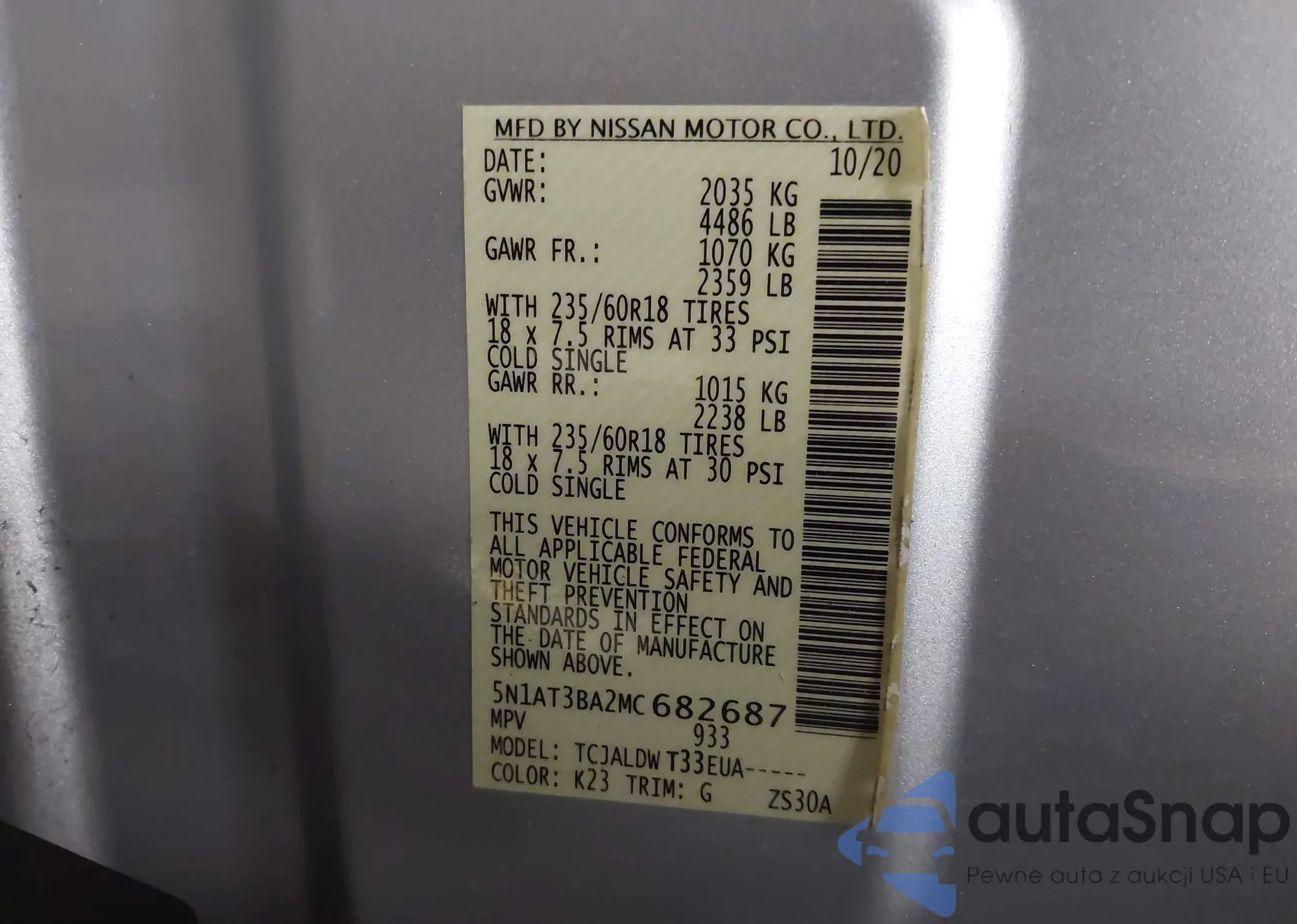 Автомобиль Nissan Rogue 2021 (VIN 5N1AT3BA2MC682687) ранее не участвовал в торгах. Документы чистые, пробег соответствует или ниже среднего по рынку. Продаётся страховой компанией — рекомендуем покупку. Доставка в порт займет около 6–8 недель.