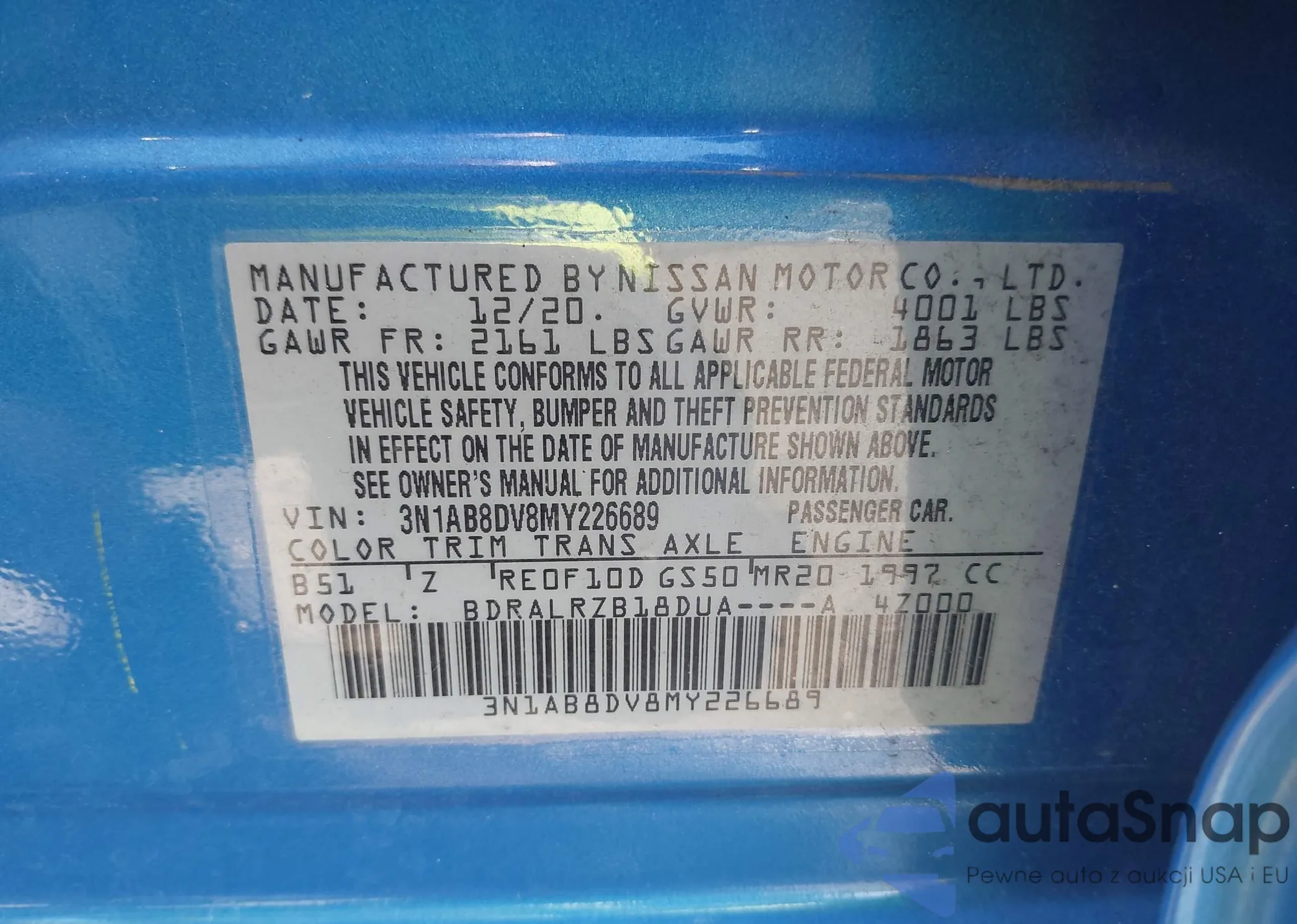 VIN: 3N1AB8DV8MY226689
