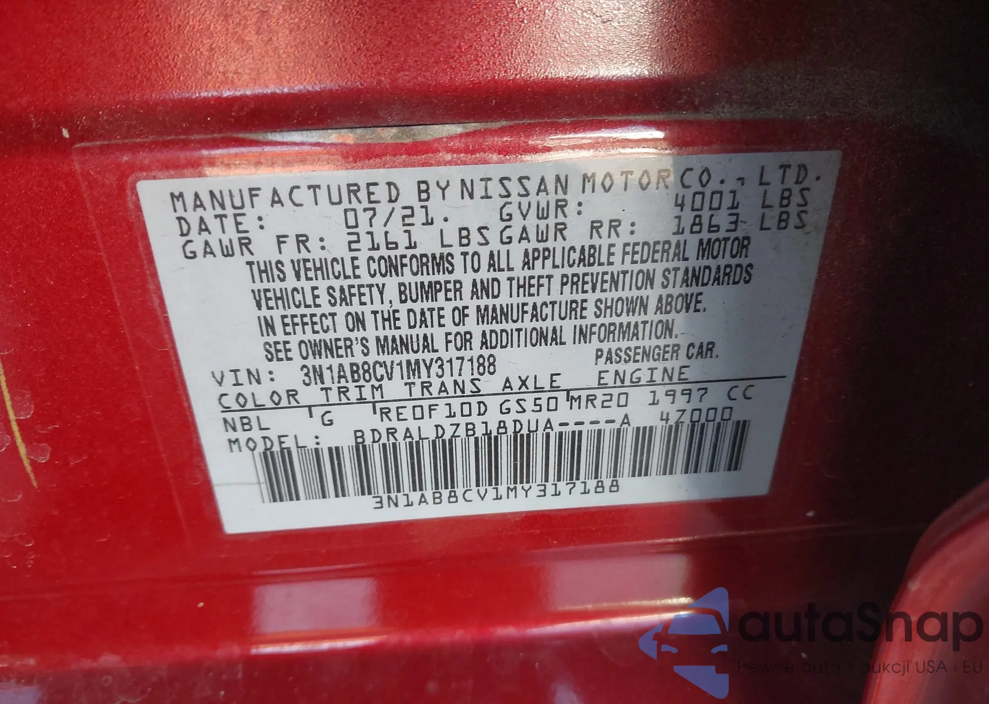 VIN: 3N1AB8CV1MY317188