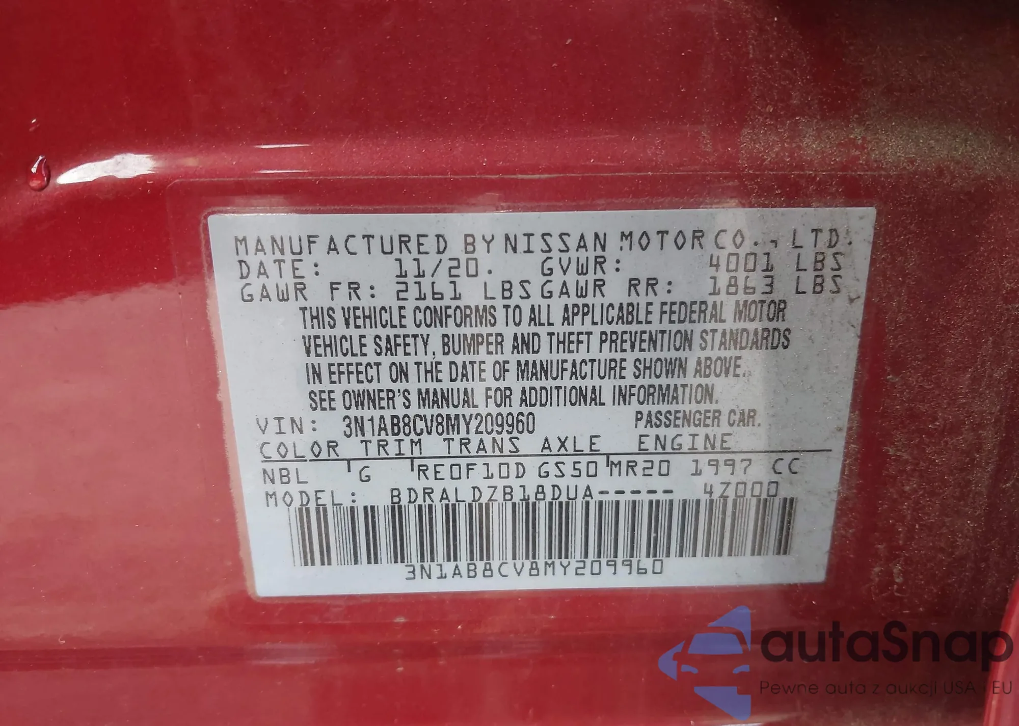 VIN: 3N1AB8CV8MY209960