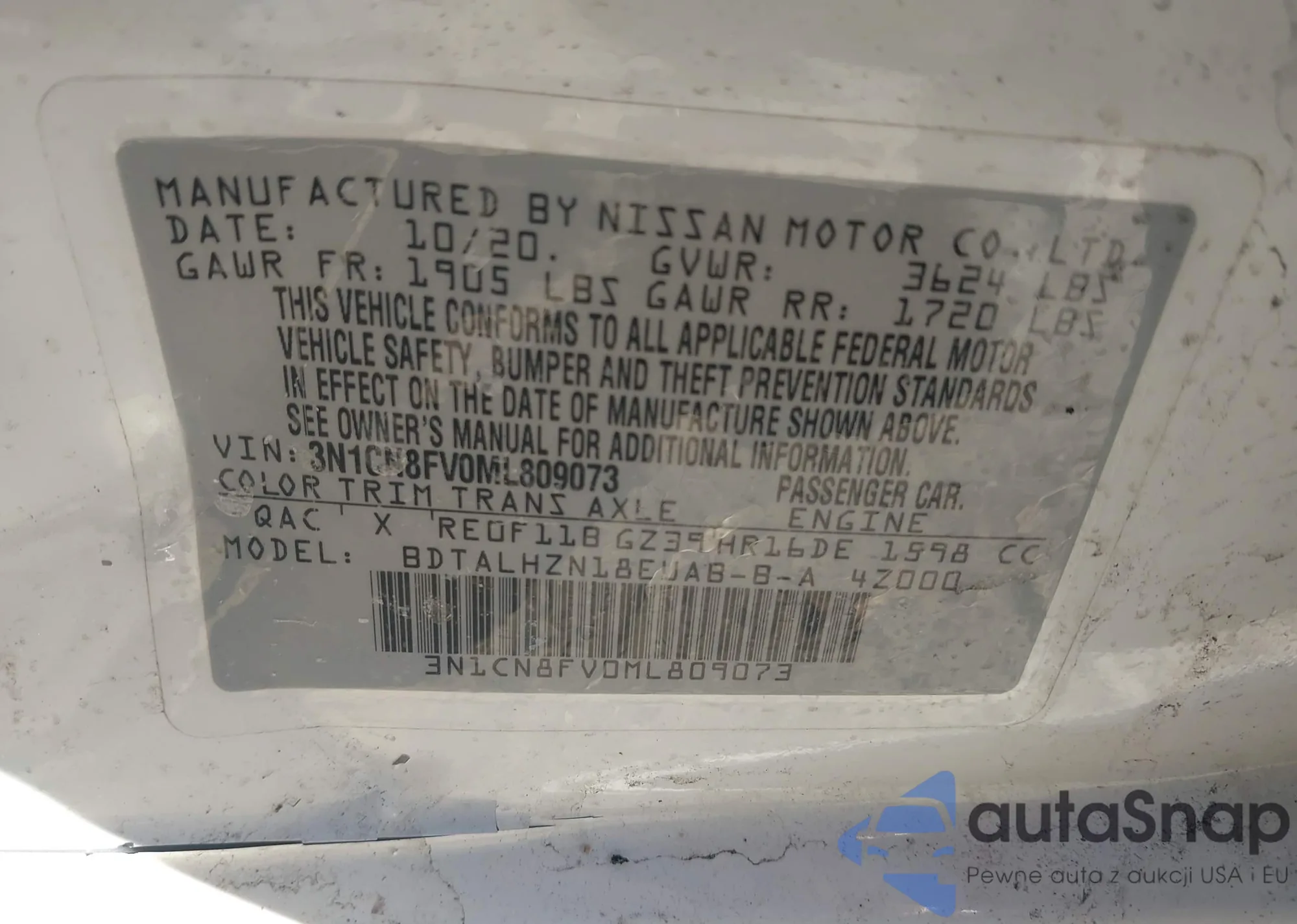 Автомобиль Nissan Versa 2021 (VIN 3N1CN8FV0ML809073) ранее не участвовал в торгах. Документы чистые, пробег соответствует или ниже среднего по рынку. Продаётся страховой компанией — рекомендуем покупку. Доставка в порт займет около 6–8 недель.