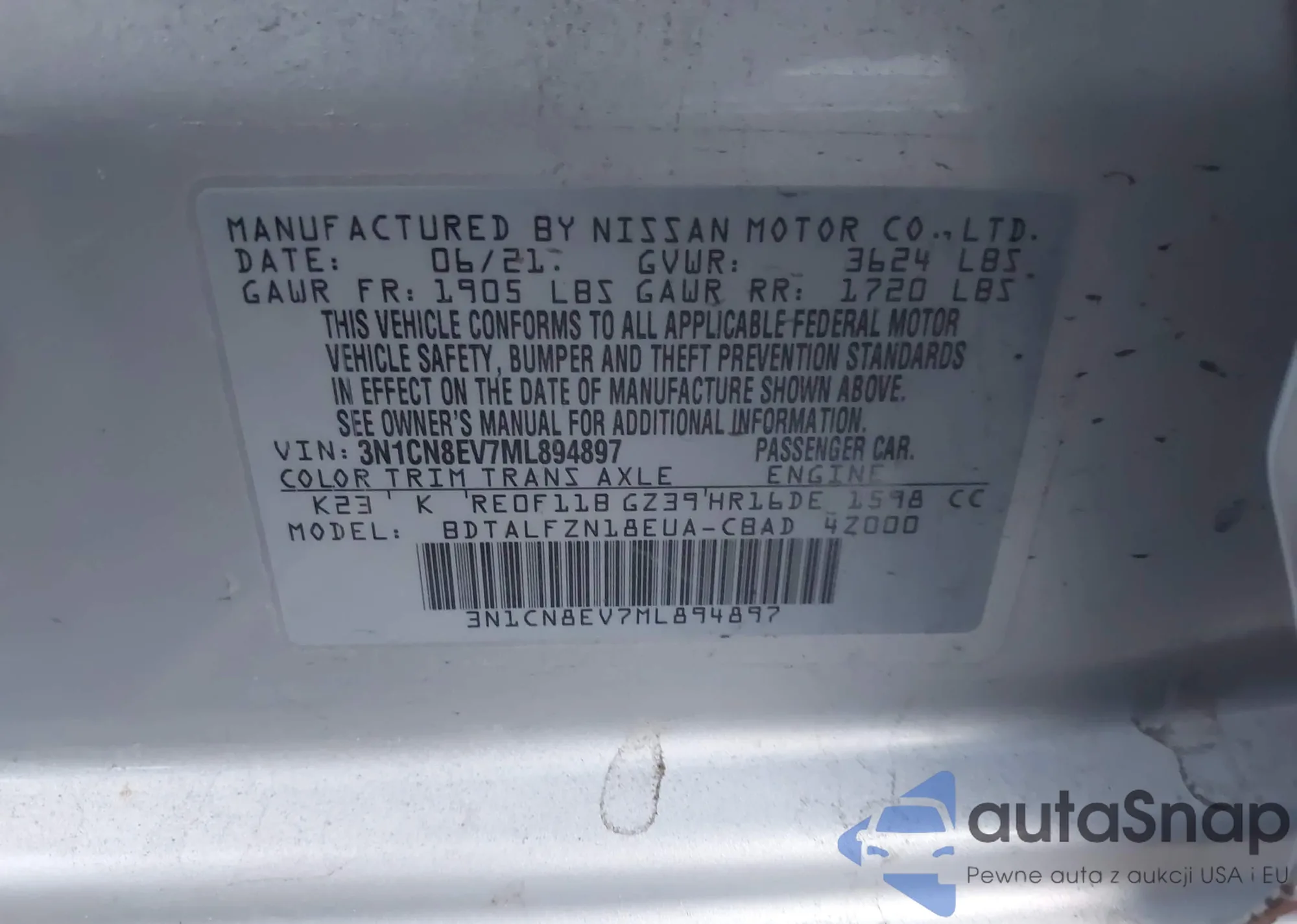 VIN: 3N1CN8EV7ML894897