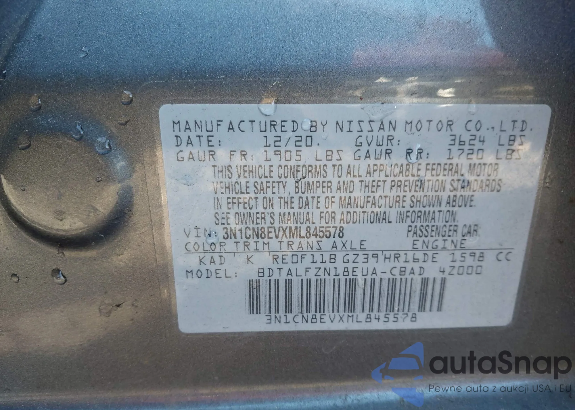 VIN: 3N1CN8EVXML845578