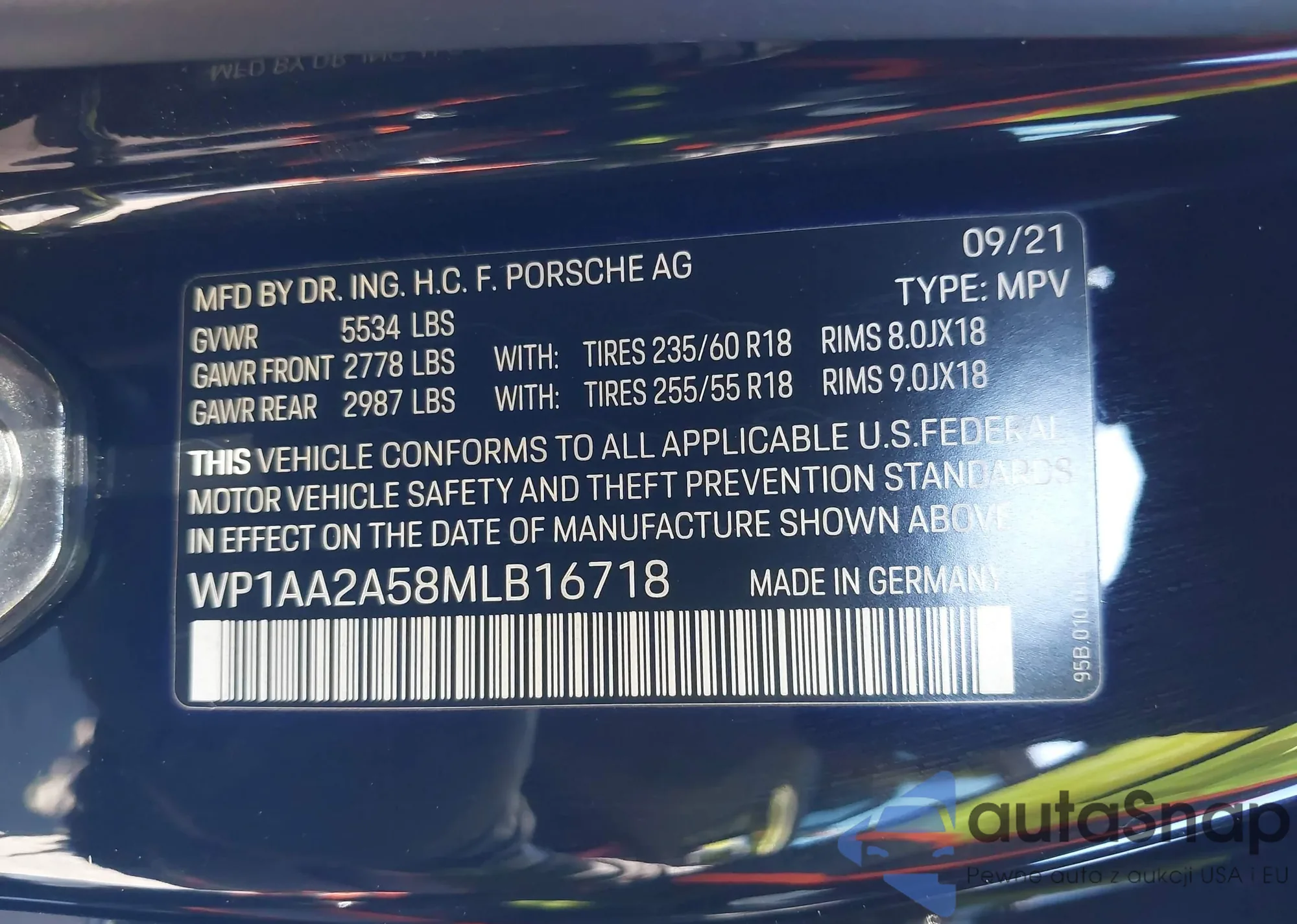 VIN: WP1AA2A58MLB16718