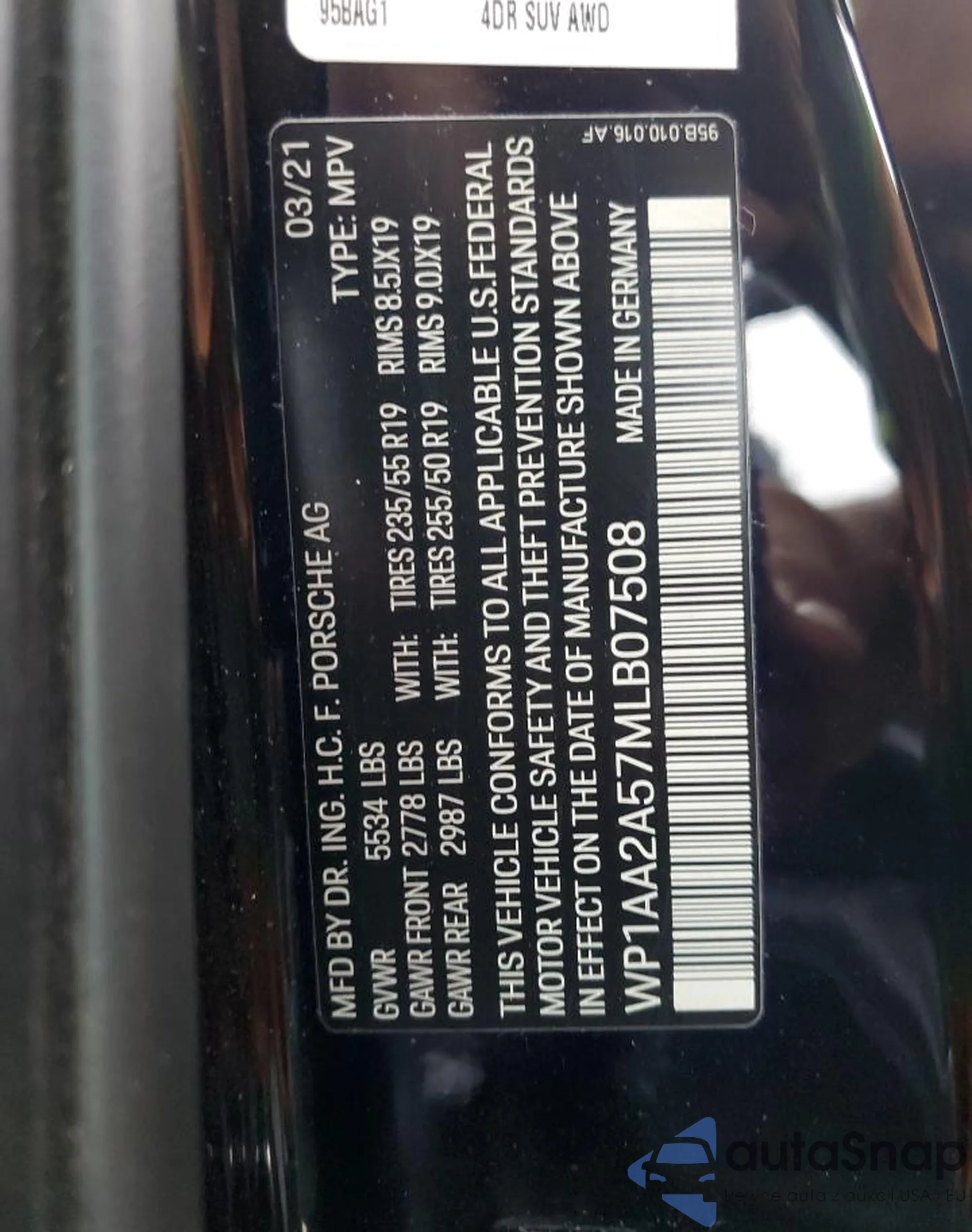 VIN: WP1AA2A57MLB07508