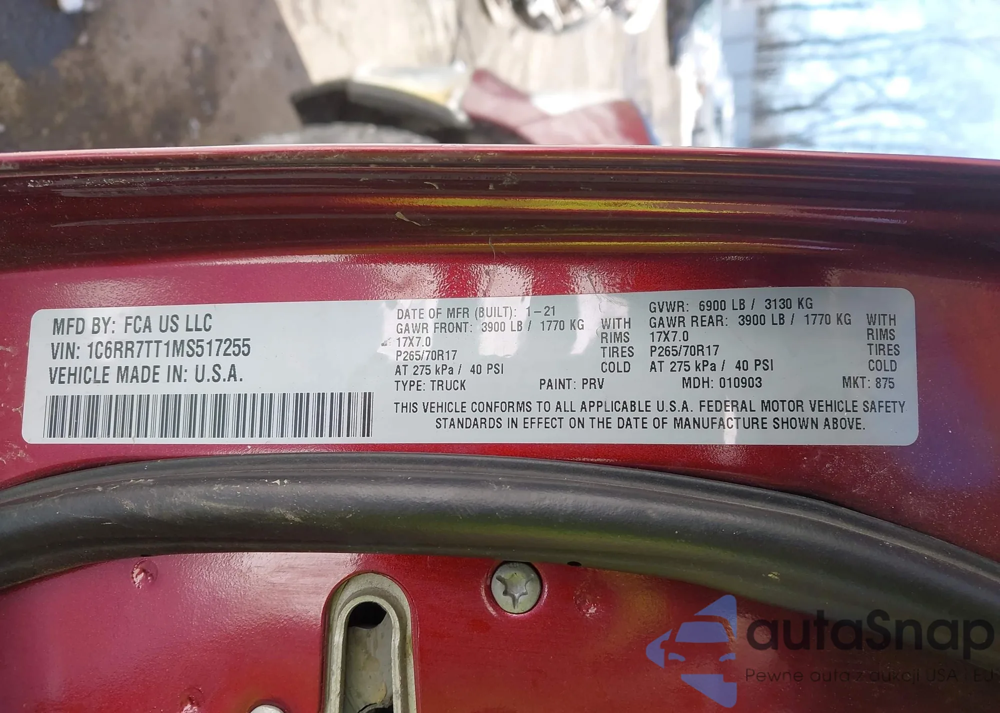 VIN: 1C6RR7TT1MS517255