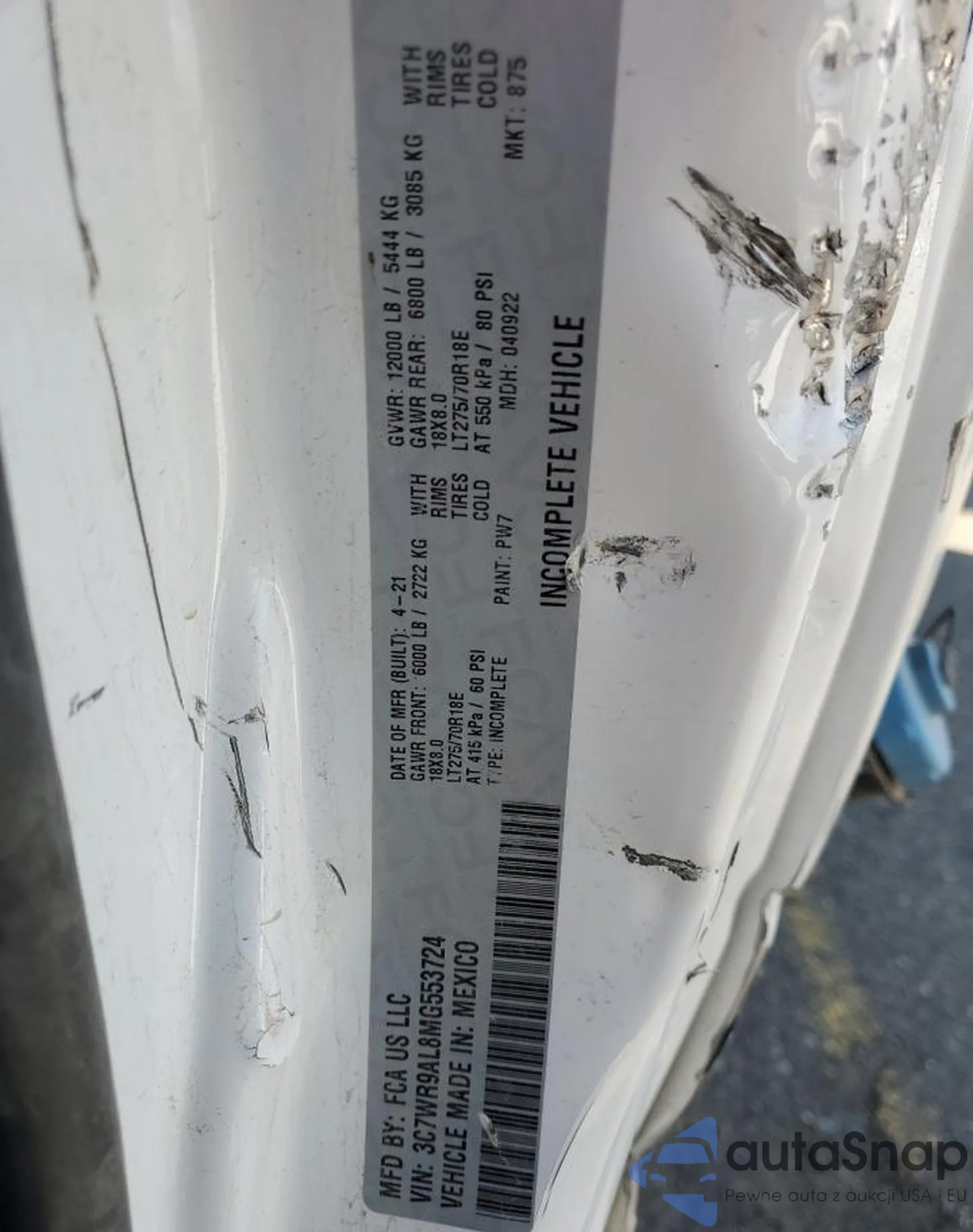 VIN: 3C7WR9AL8MG553724
