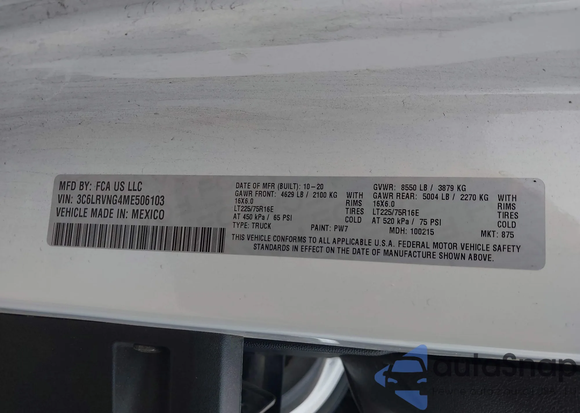 VIN: 3C6LRVNG4ME506103