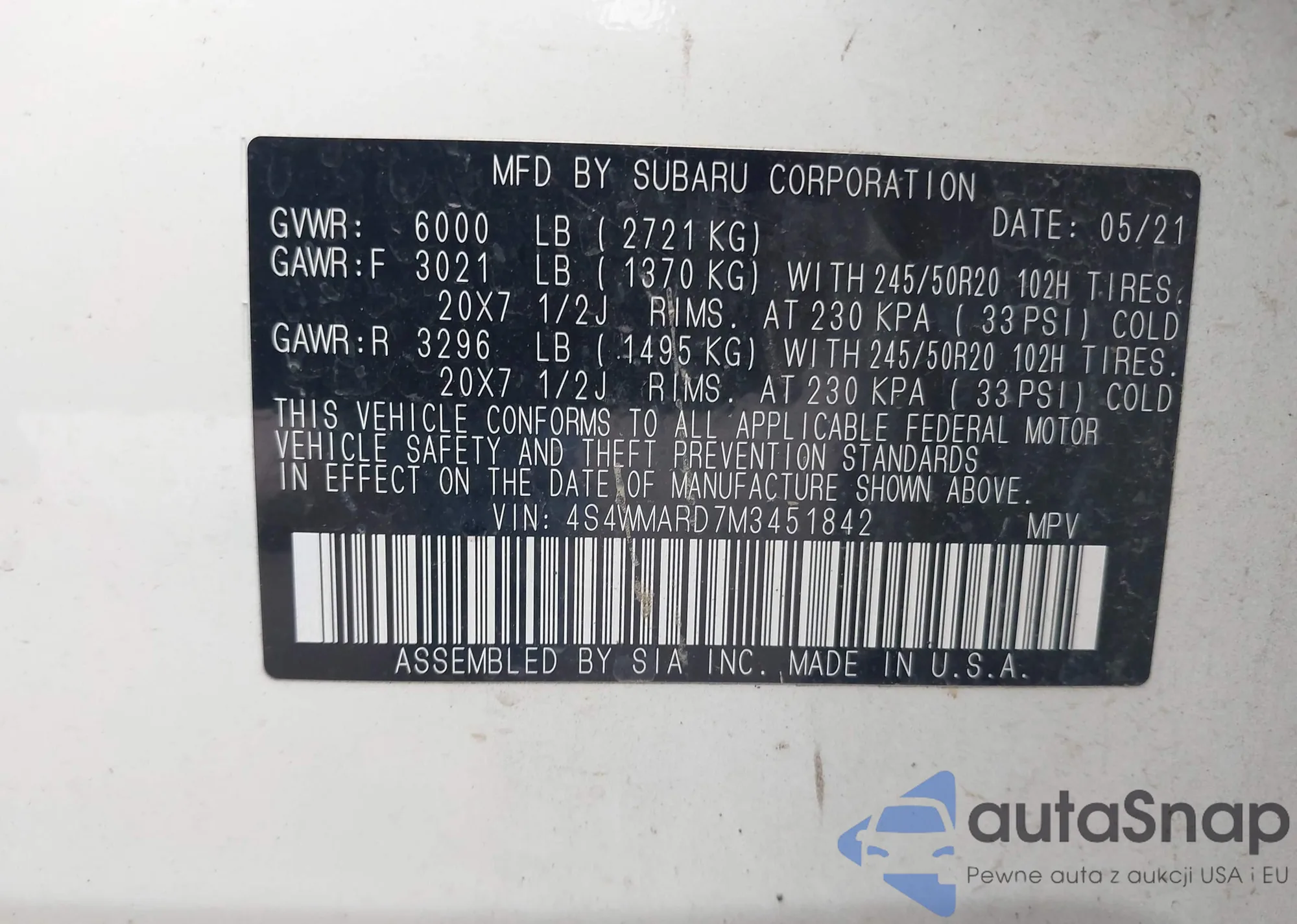VIN: 4S4WMARD7M3451842