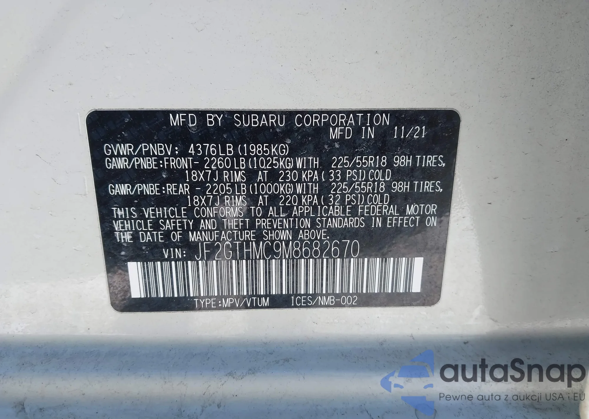• VIN: JF2GTHMC9M8682670