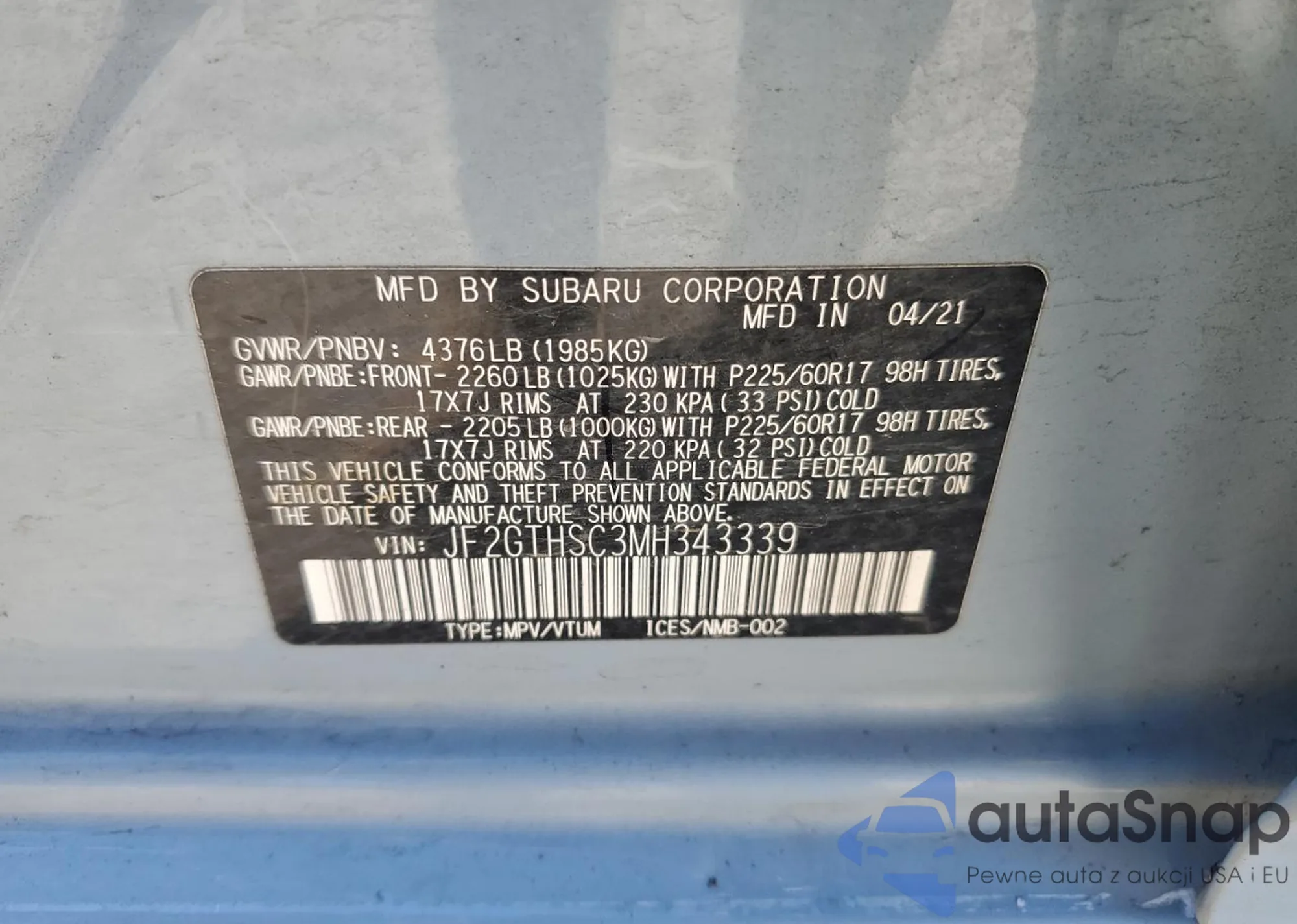 VIN: JF2GTHSC3MH343339