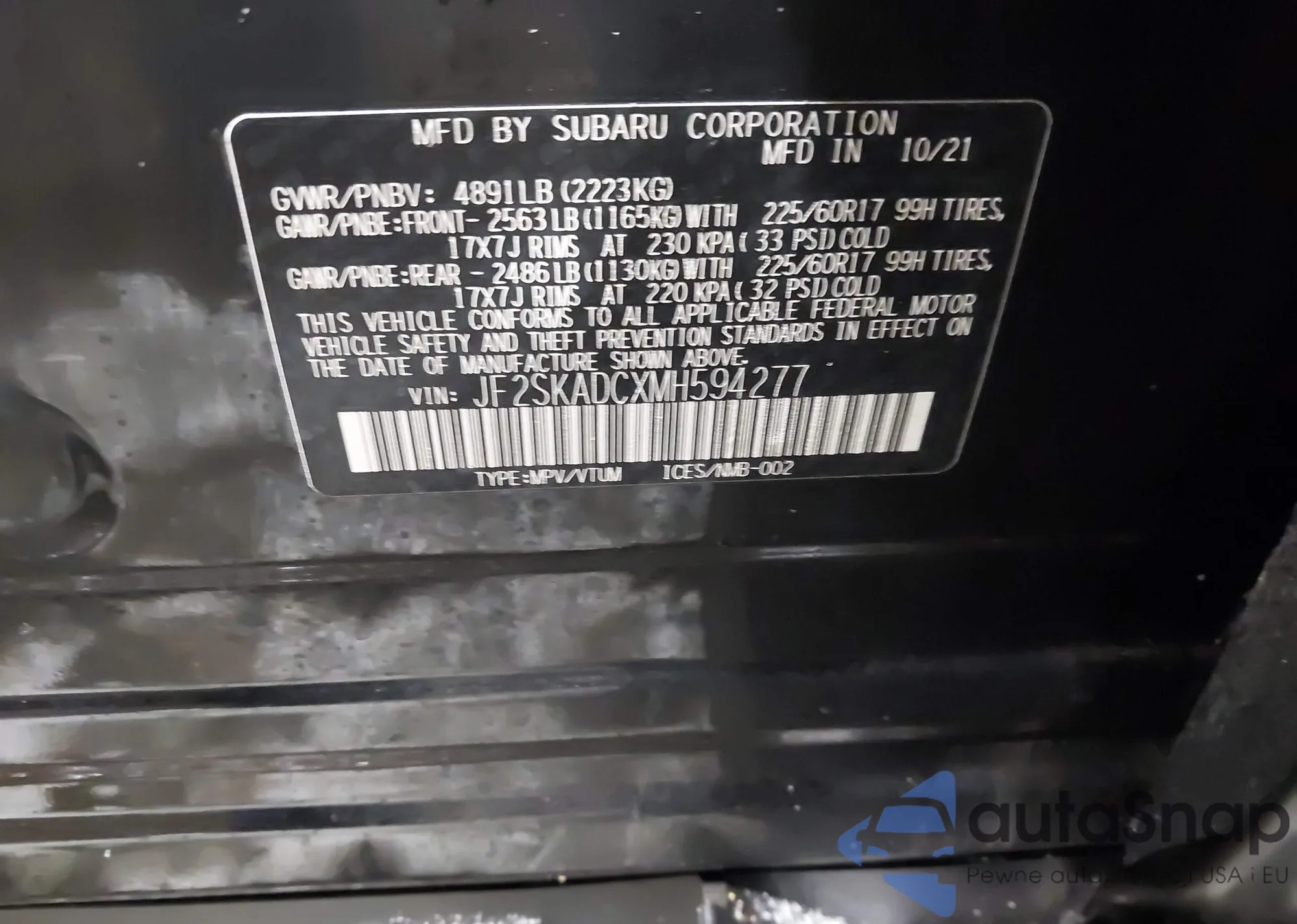 Автомобиль Subaru Forester 2021 (VIN JF2SKADCXMH594277) ранее не участвовал в торгах. Документы чистые, пробег соответствует или ниже среднего по рынку. Продаётся страховой компанией — рекомендуем покупку. Доставка в порт займет около 6–8 недель.