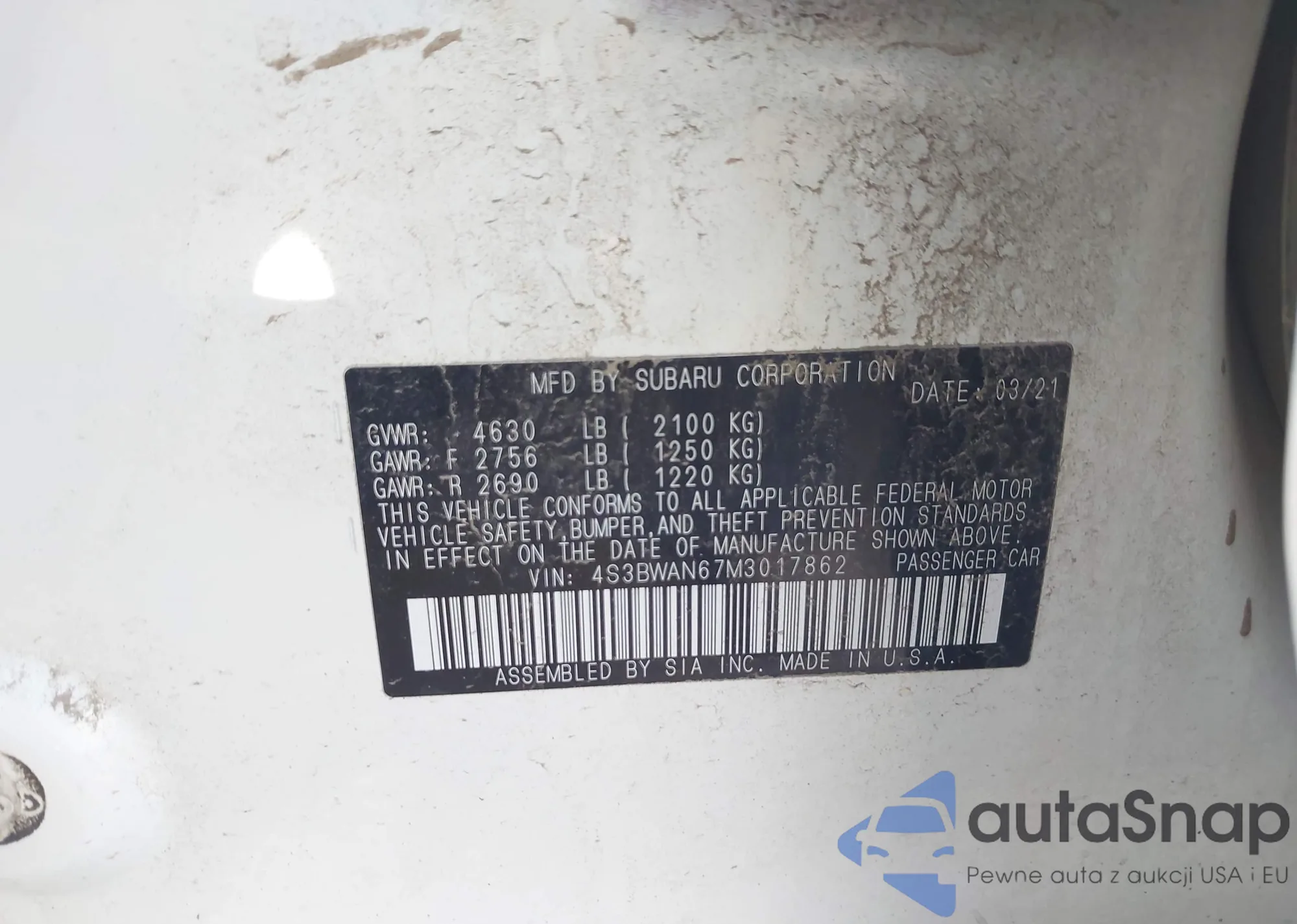 VIN: 4S3BWAN67M3017862