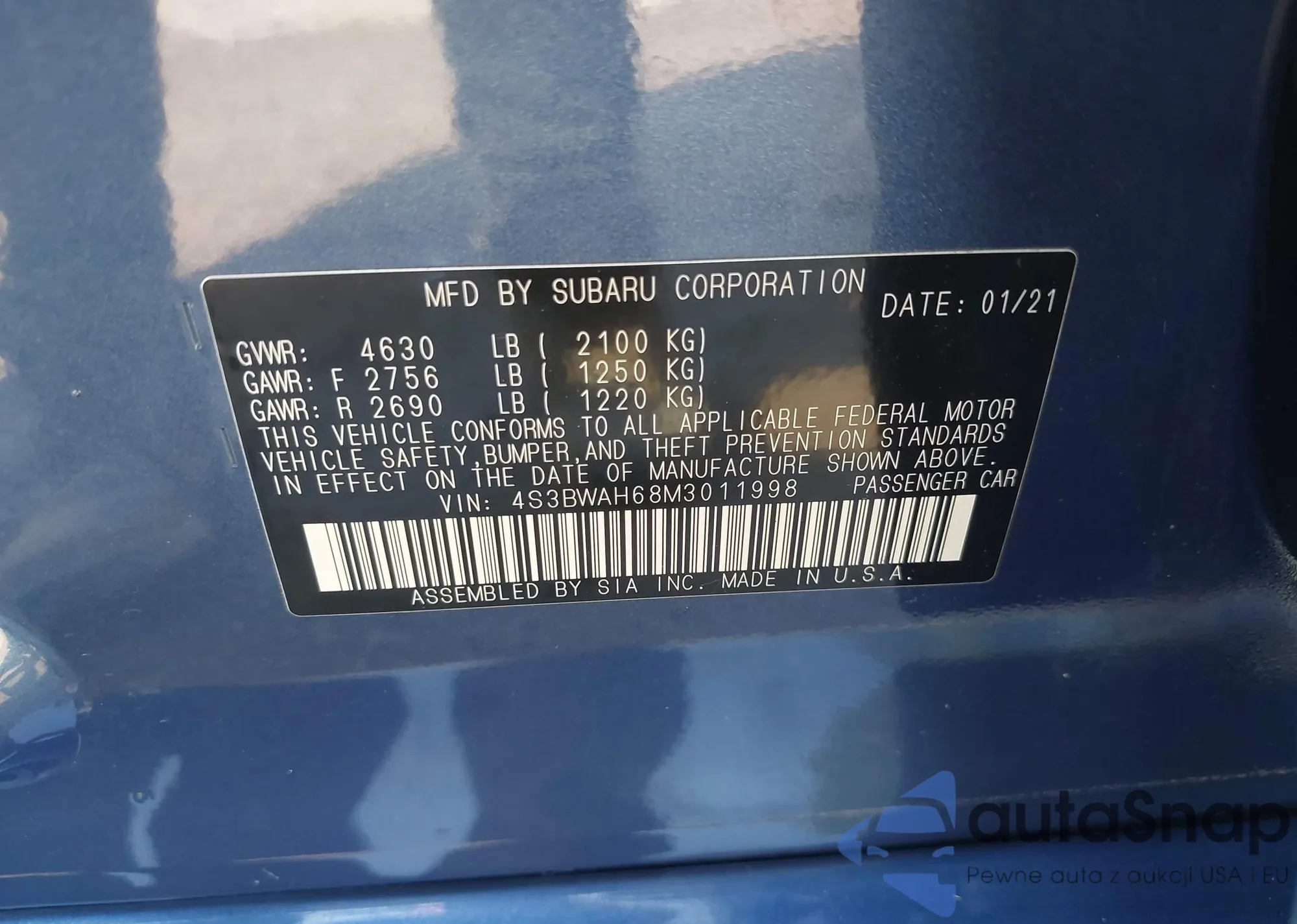 VIN: 4S3BWAH68M3011998