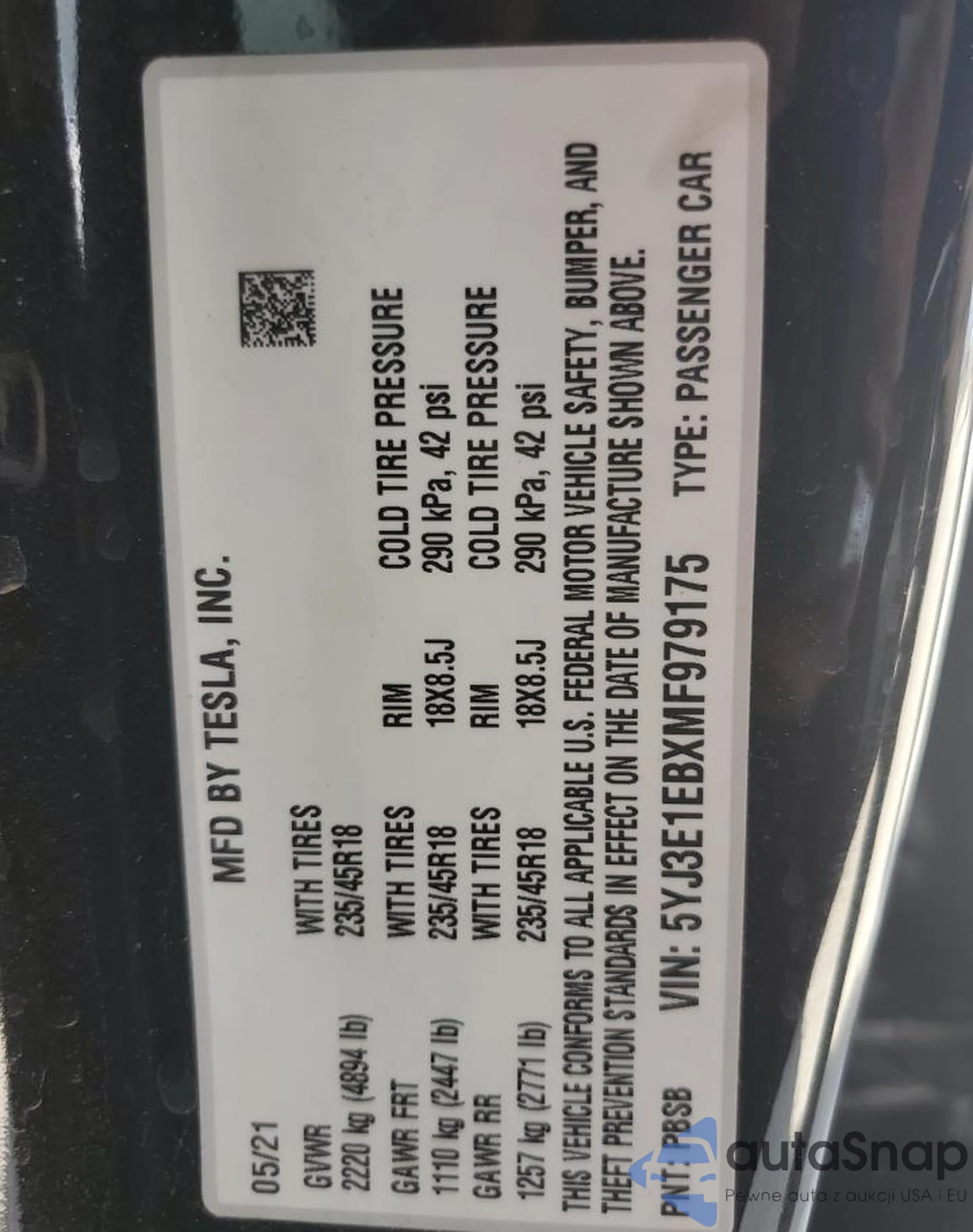 VIN: 5YJ3E1EBXMF979175