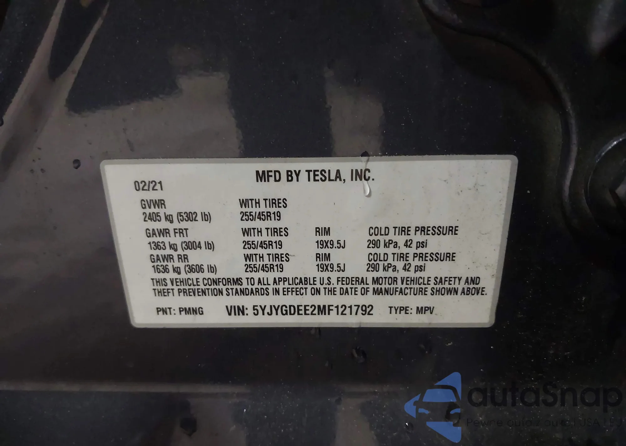 VIN: 5YJYGDEE2MF121792