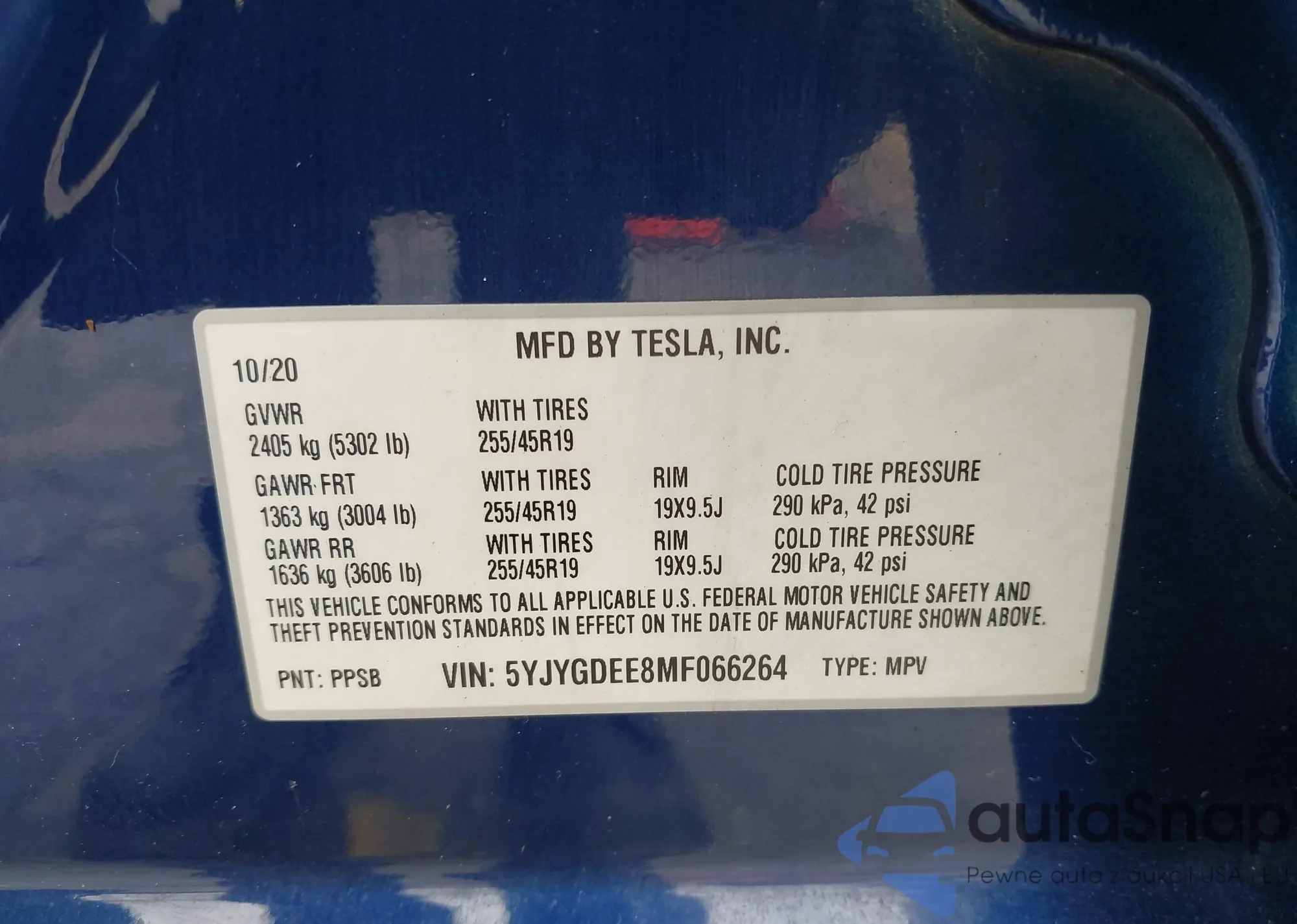 VIN: 5YJYGDEE8MF066264