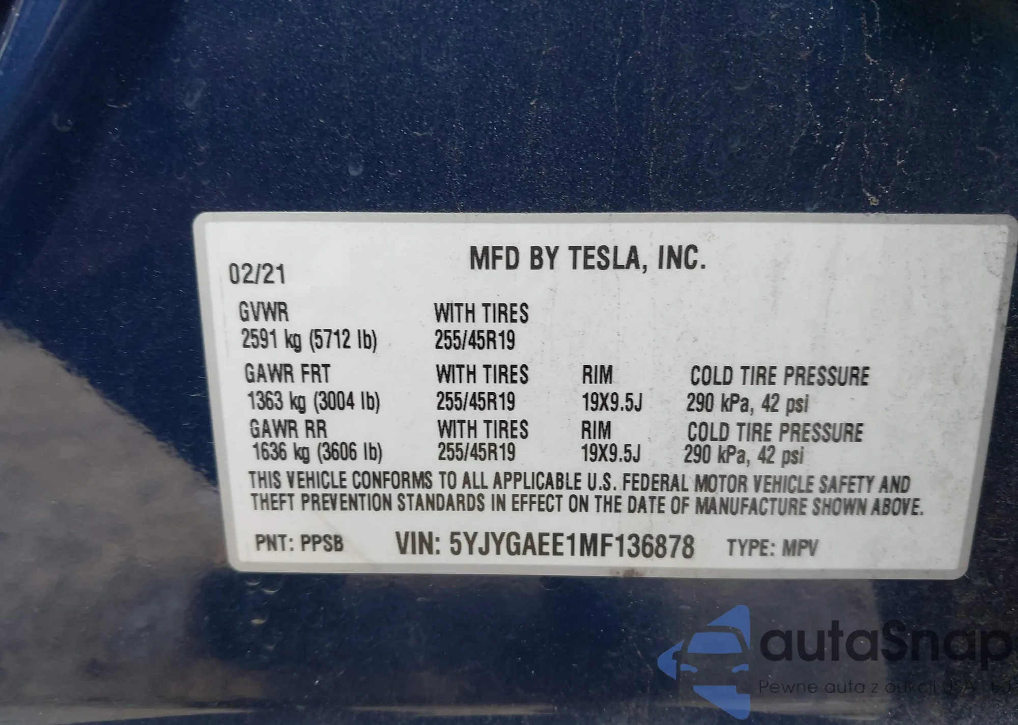 • VIN: 5YJYGAEE1MF136878