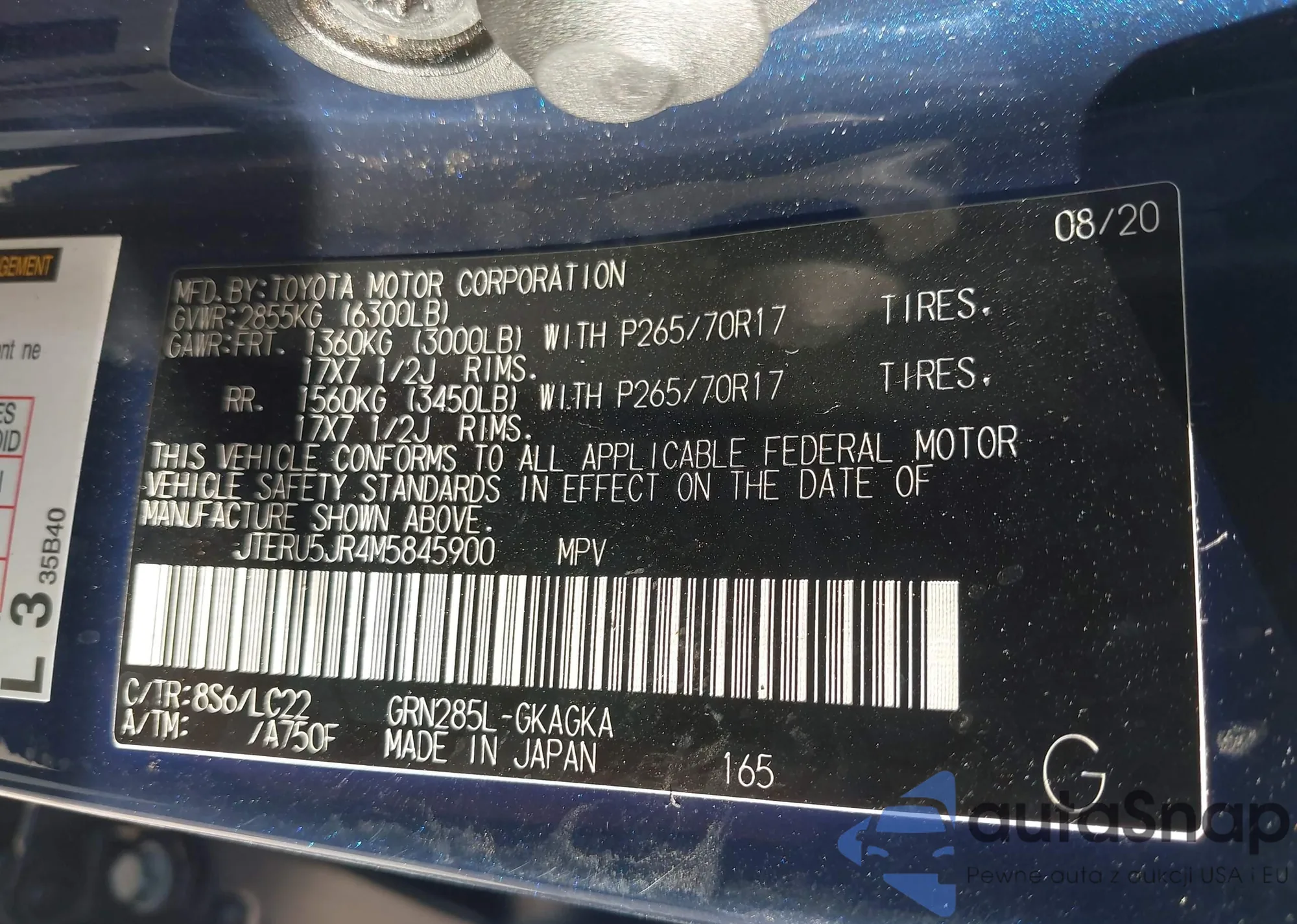 • VIN: JTERU5JR4M5845900