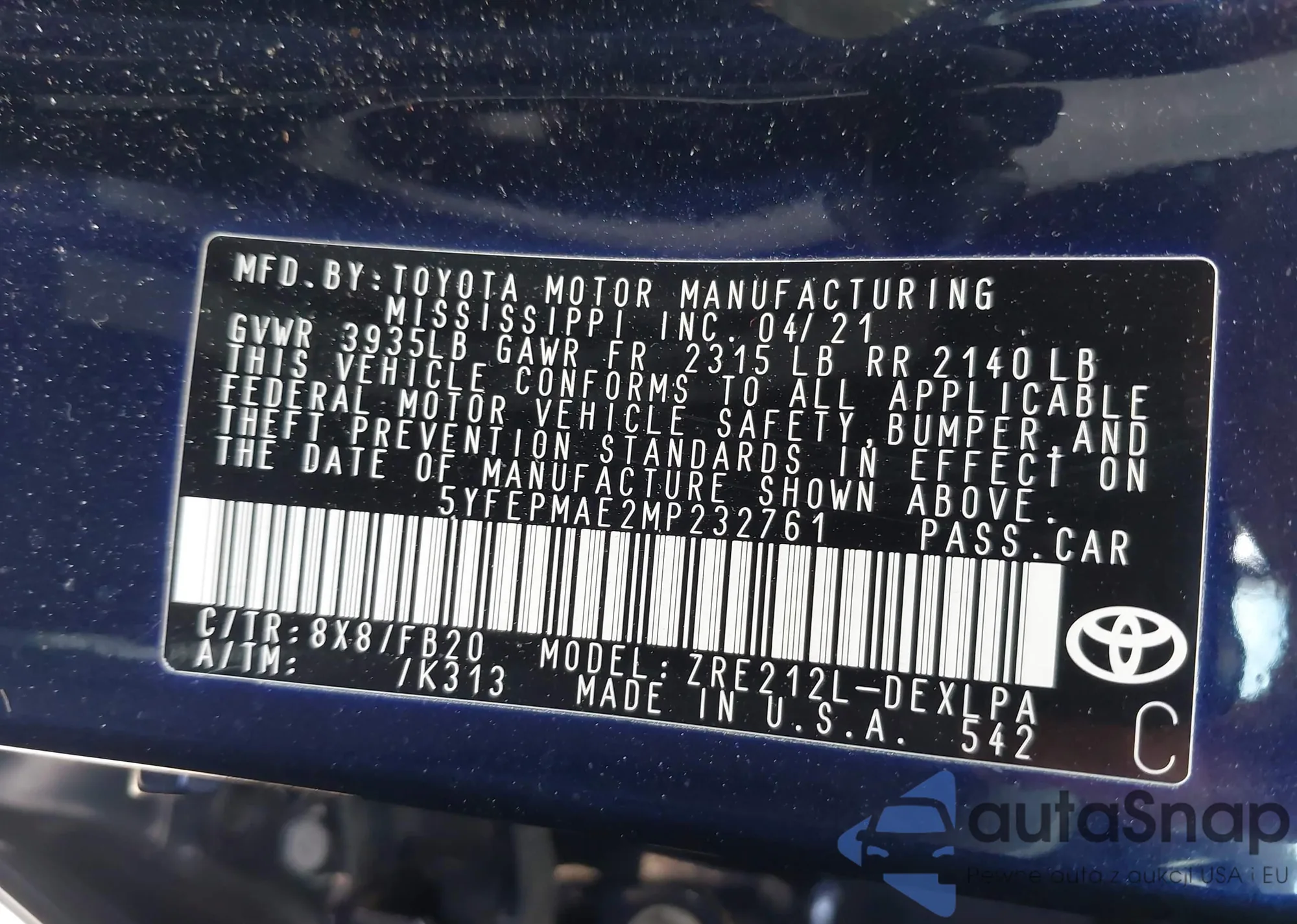 VIN: 5YFEPMAE2MP232761