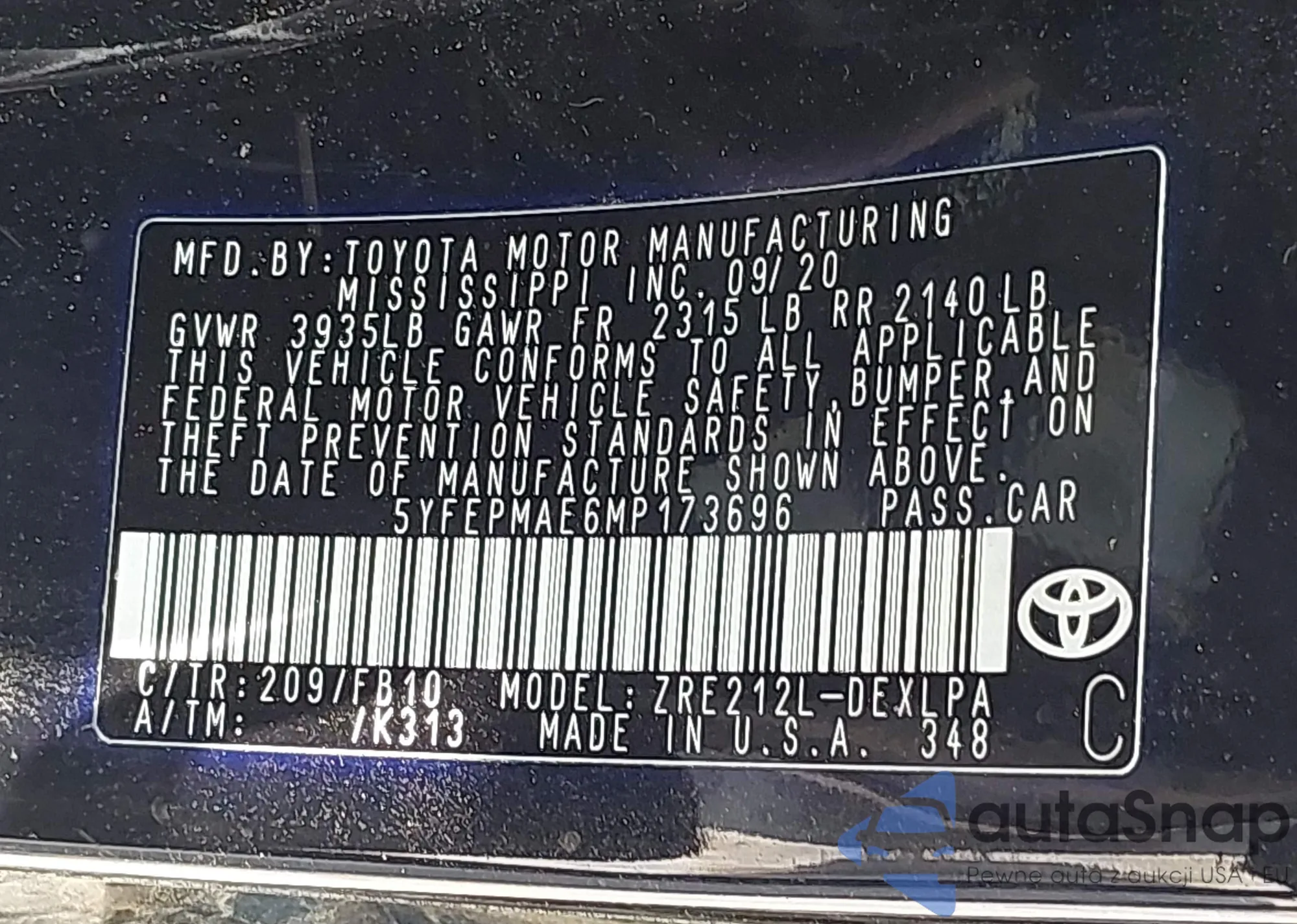 VIN: 5YFEPMAE6MP173696