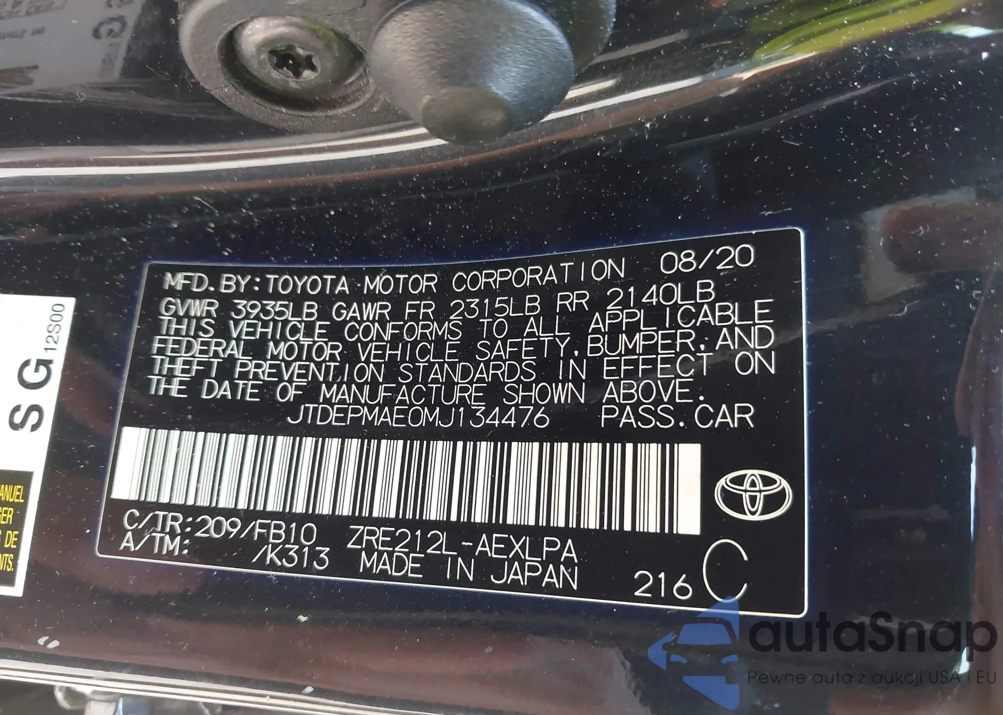 VIN: JTDEPMAE0MJ134476