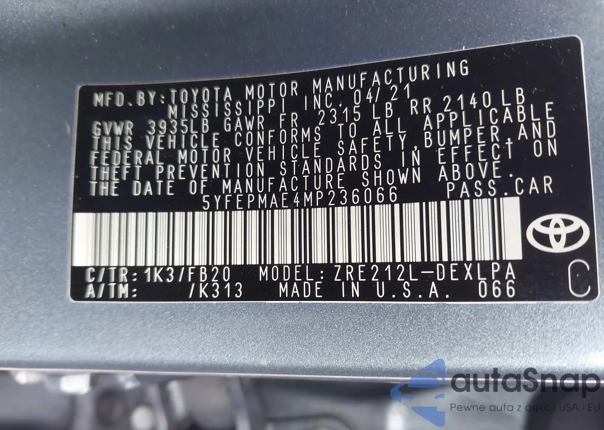 VIN: 5YFEPMAE4MP236066