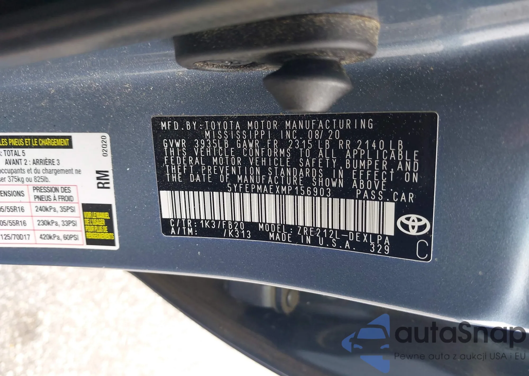 VIN: 5YFEPMAEXMP156903