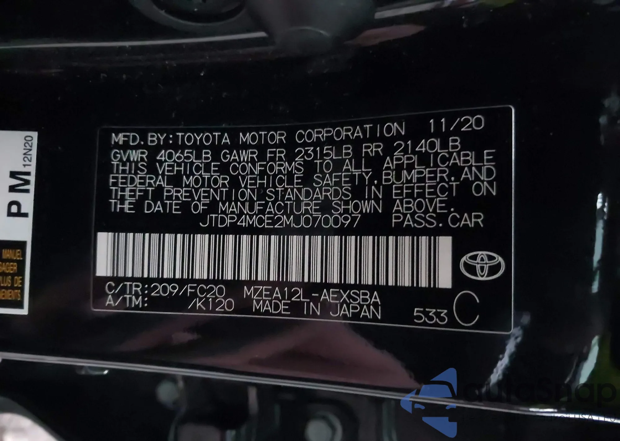 VIN: JTDP4MCE2MJ070097