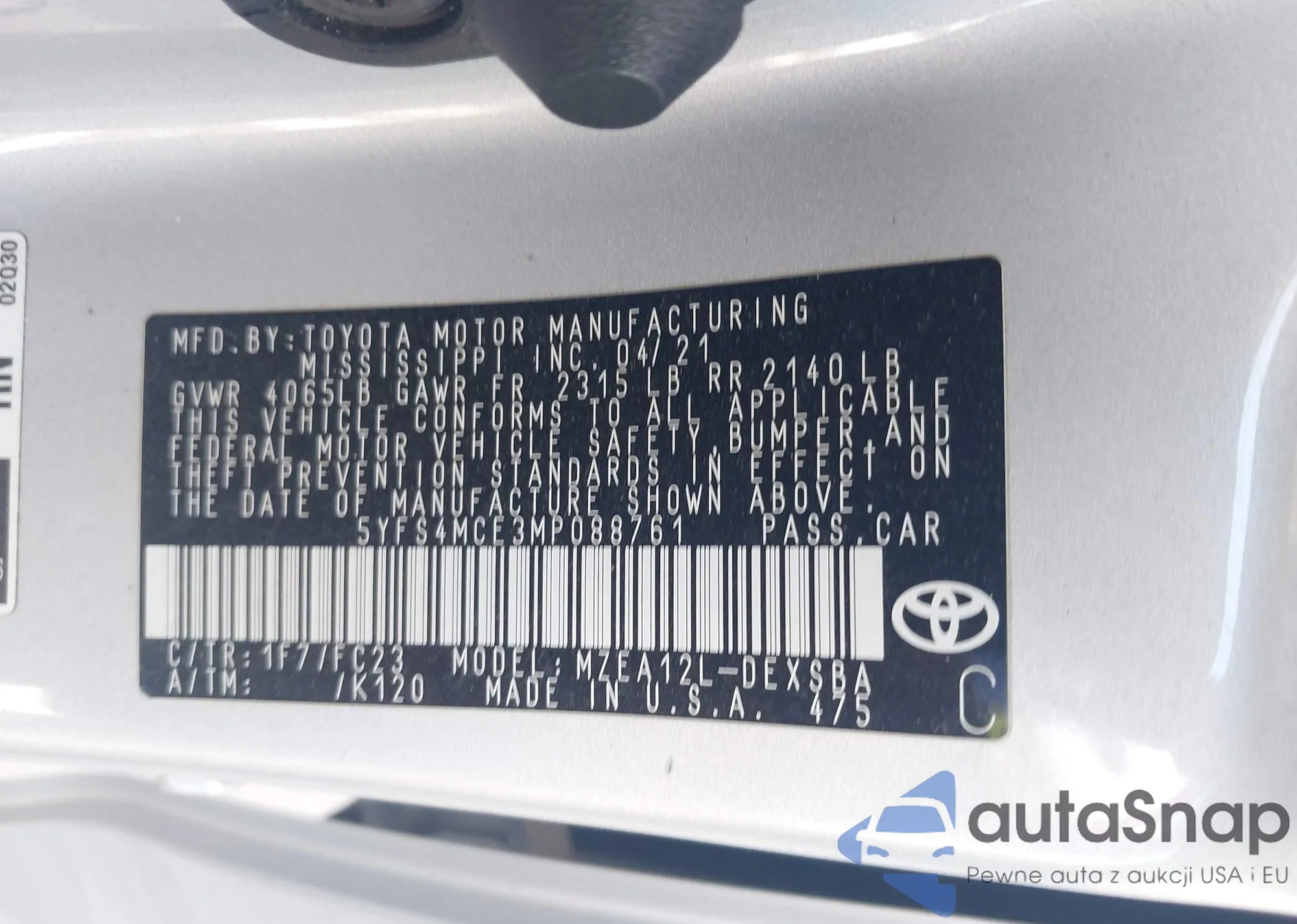 VIN: 5YFS4MCE3MP088761