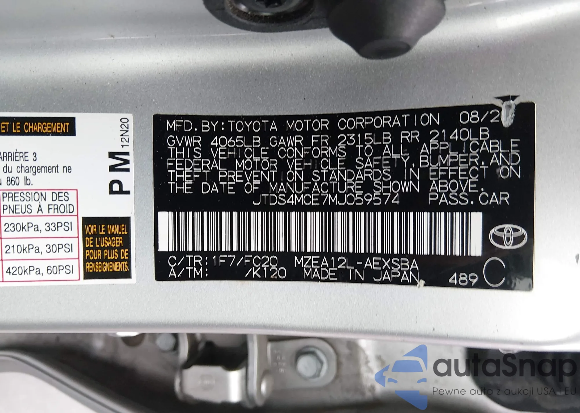 Автомобиль Toyota Corolla 2021 (VIN JTDS4MCE7MJ059574) ранее не участвовал в торгах. Документы чистые, пробег соответствует или ниже среднего по рынку. Продаётся страховой компанией — рекомендуем покупку. Доставка в порт займет около 6–8 недель.