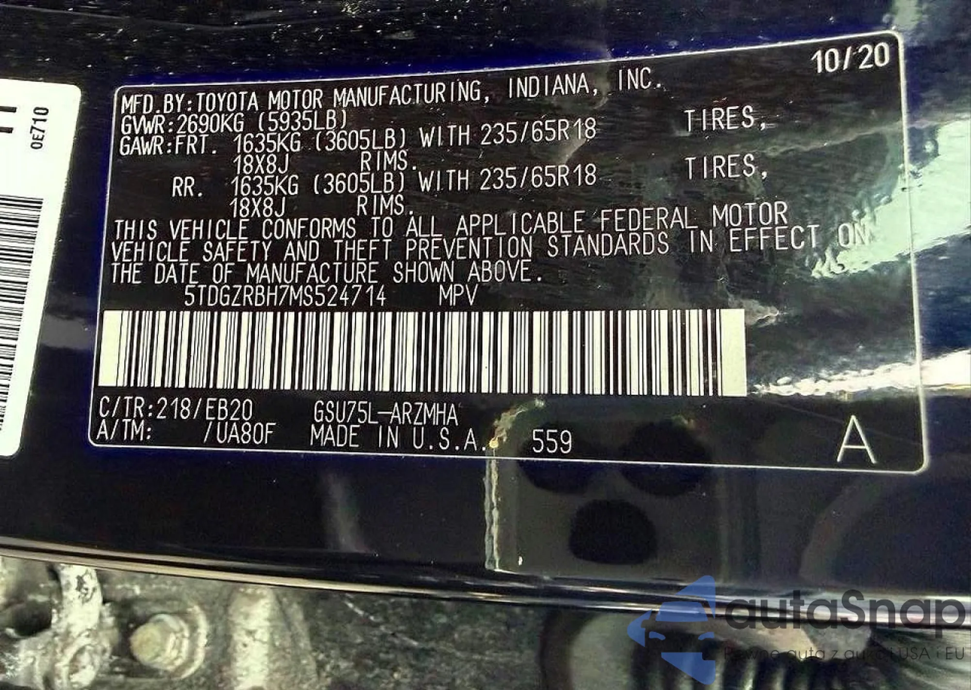 VIN: 5TDGZRBH7MS524714