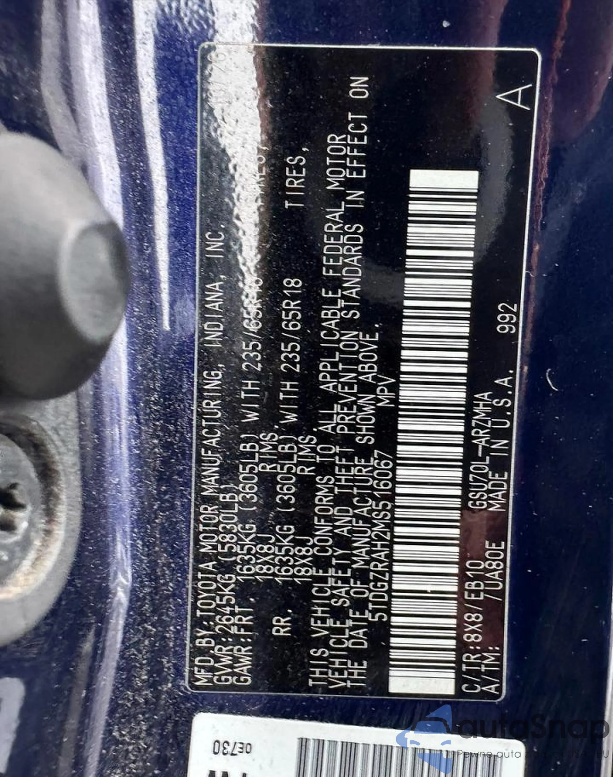 VIN: 5TDGZRAH2MS516067