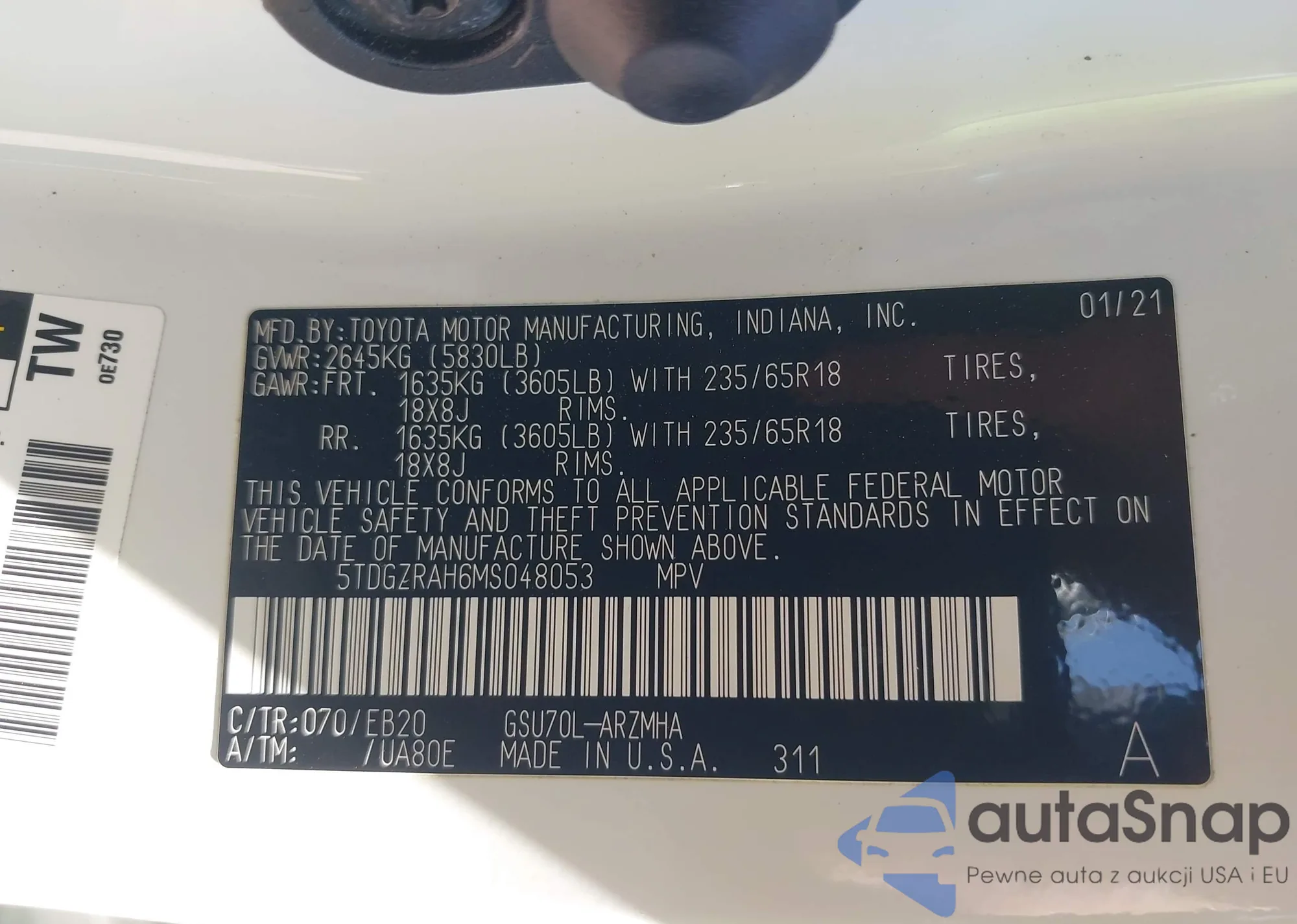• VIN: 5TDGZRAH6MS048053