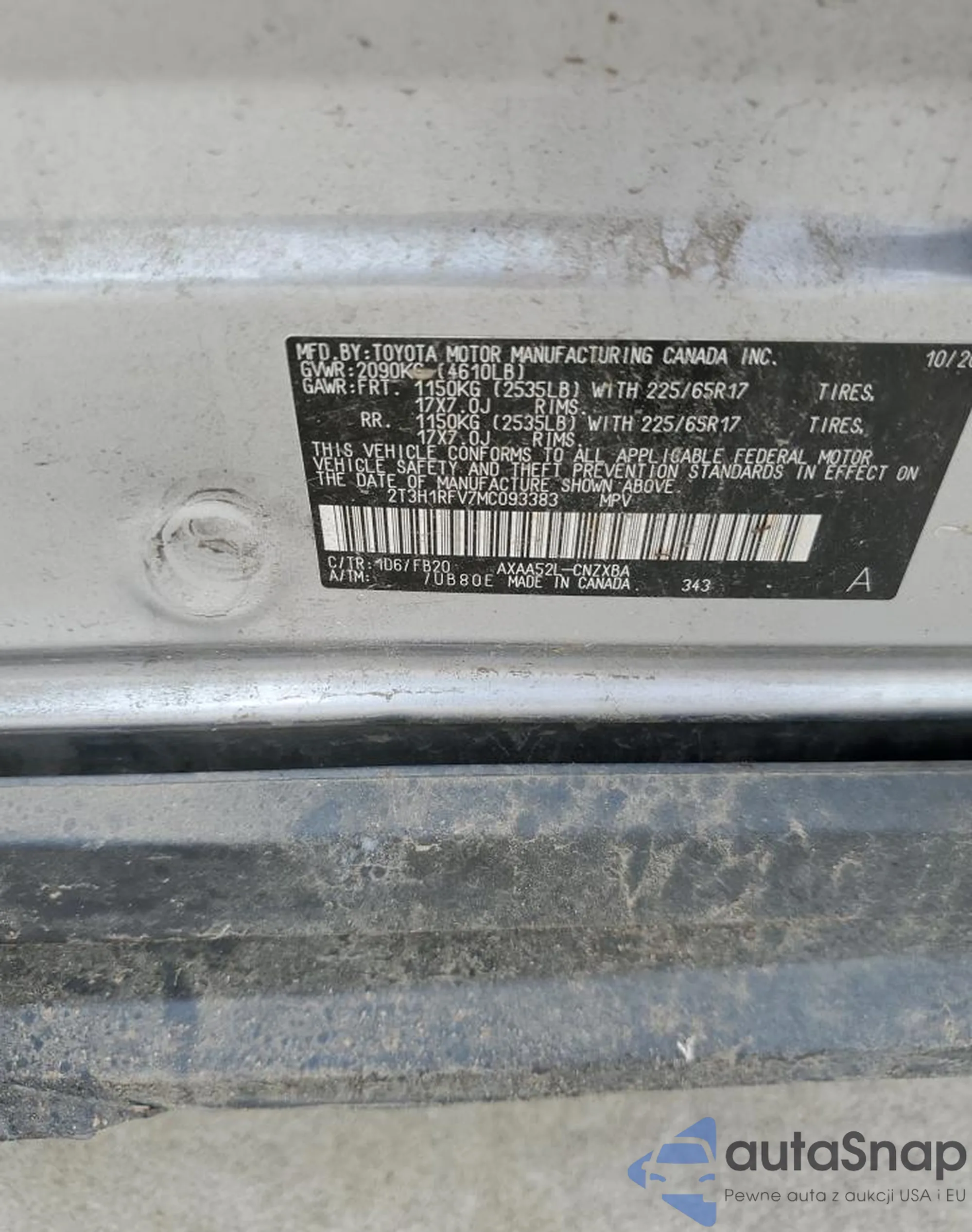 VIN: 2T3H1RFV7MC093383
