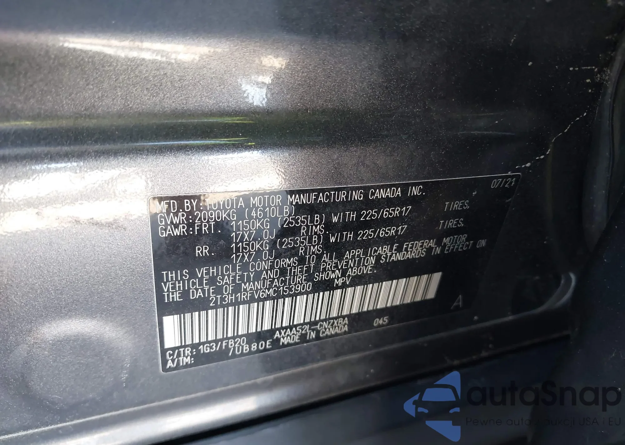 Автомобиль Toyota RAV 4 2021 (VIN 2T3H1RFV6MC153900) имеет документы, препятствующие регистрации. Могут возникнуть сложности при экспорте и регистрации. Обратитесь к экспертам AutaSnap для поиска альтернатив.