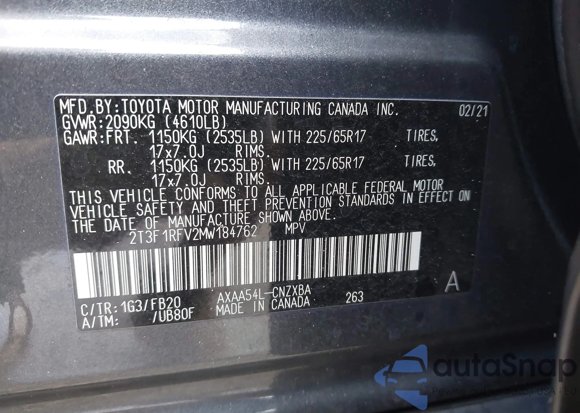 VIN: 2T3F1RFV2MW184762