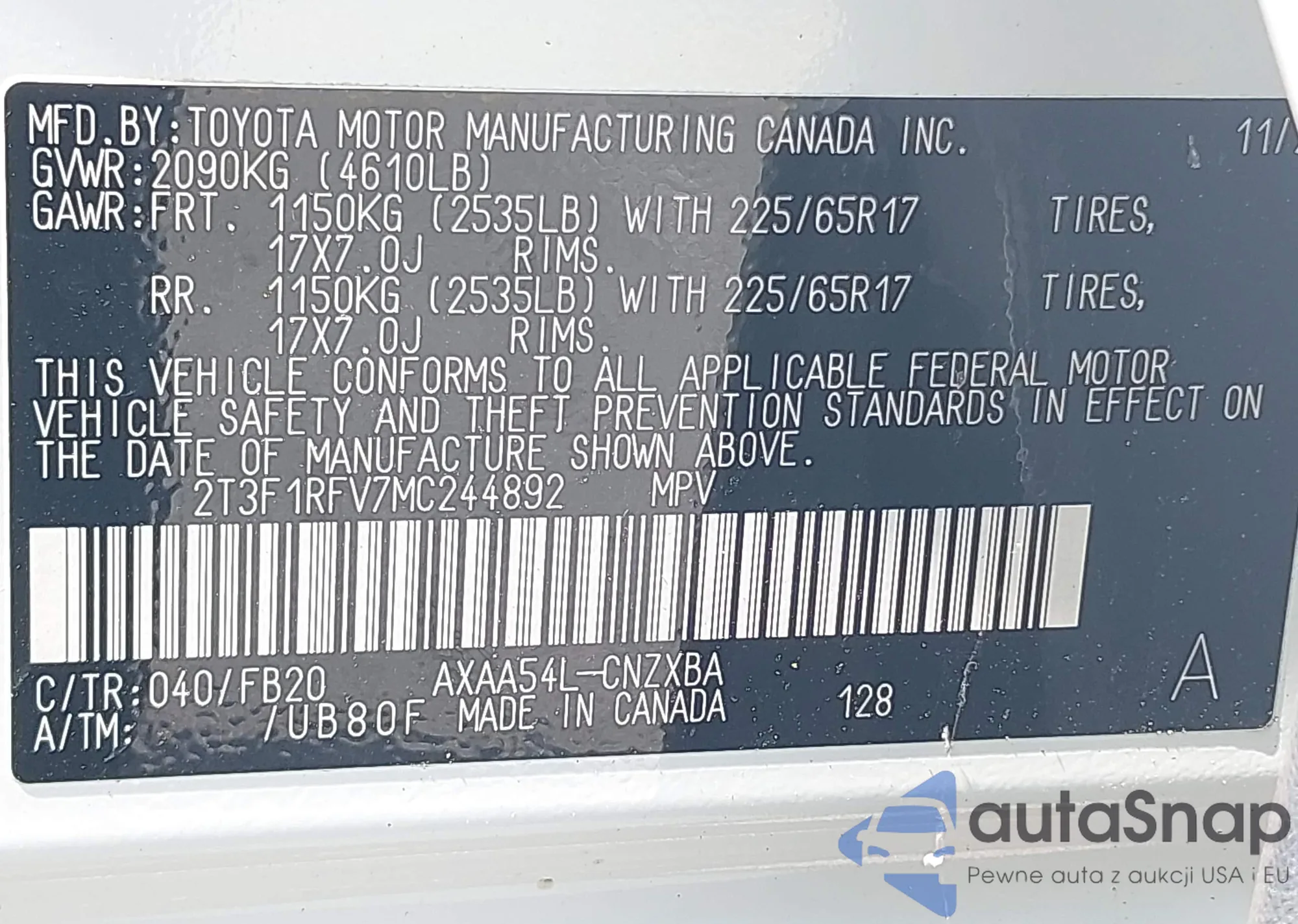 VIN: 2T3F1RFV7MC244892