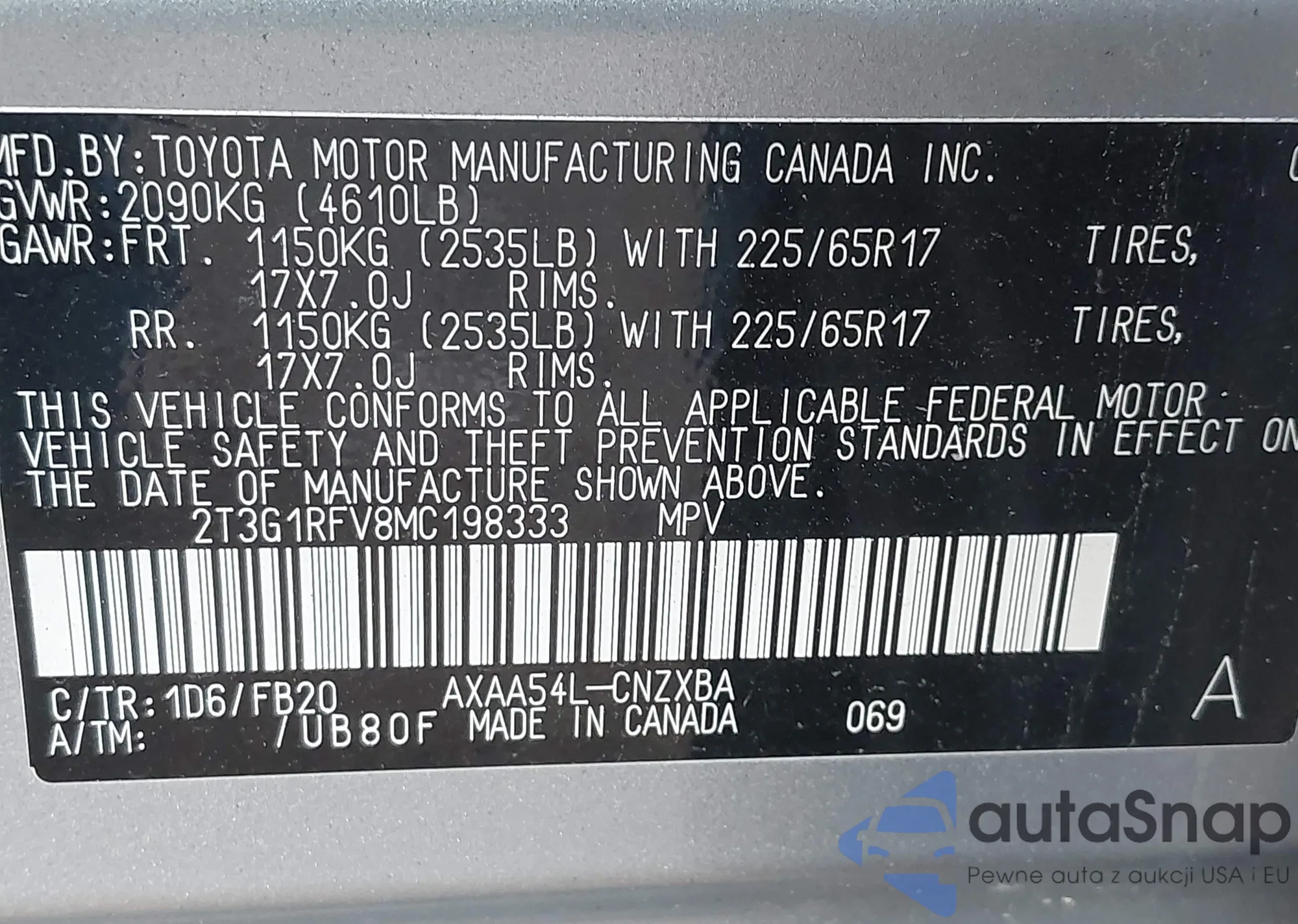 VIN: 2T3G1RFV8MC198333