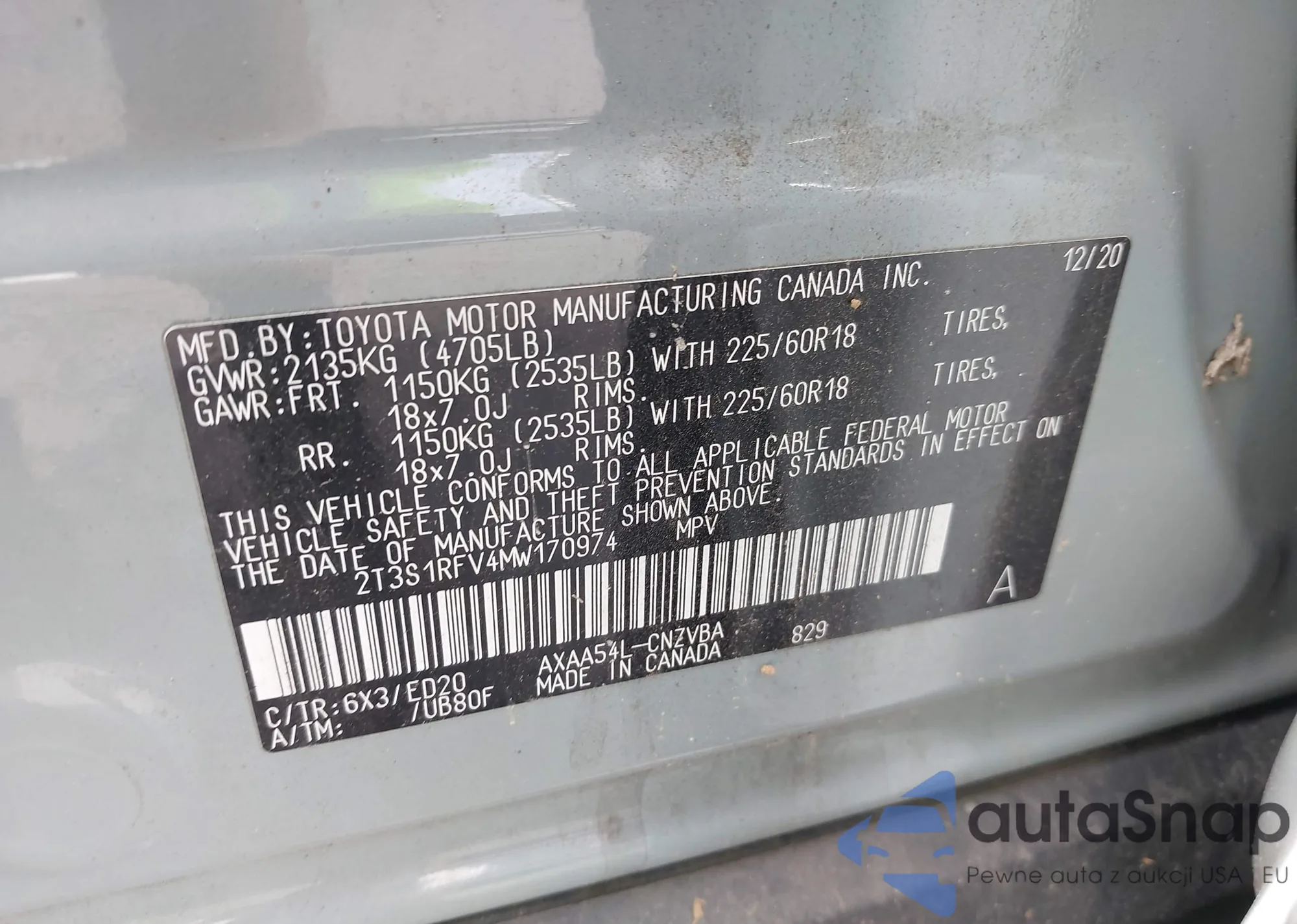 VIN: 2T3S1RFV4MW170974