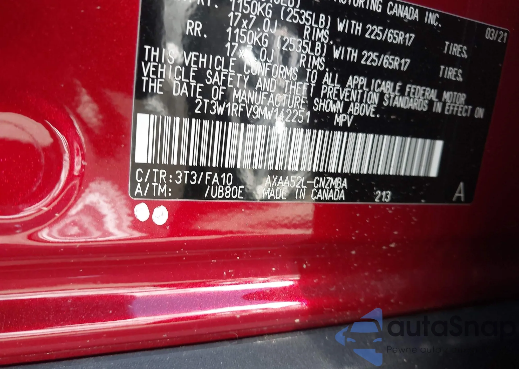 VIN: 2T3W1RFV9MW142251