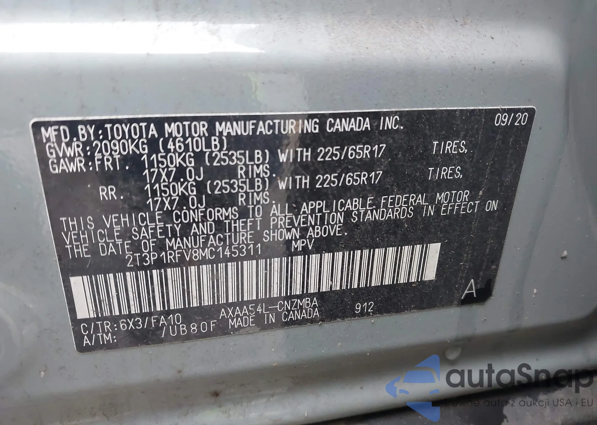 • VIN: 2T3P1RFV8MC145311