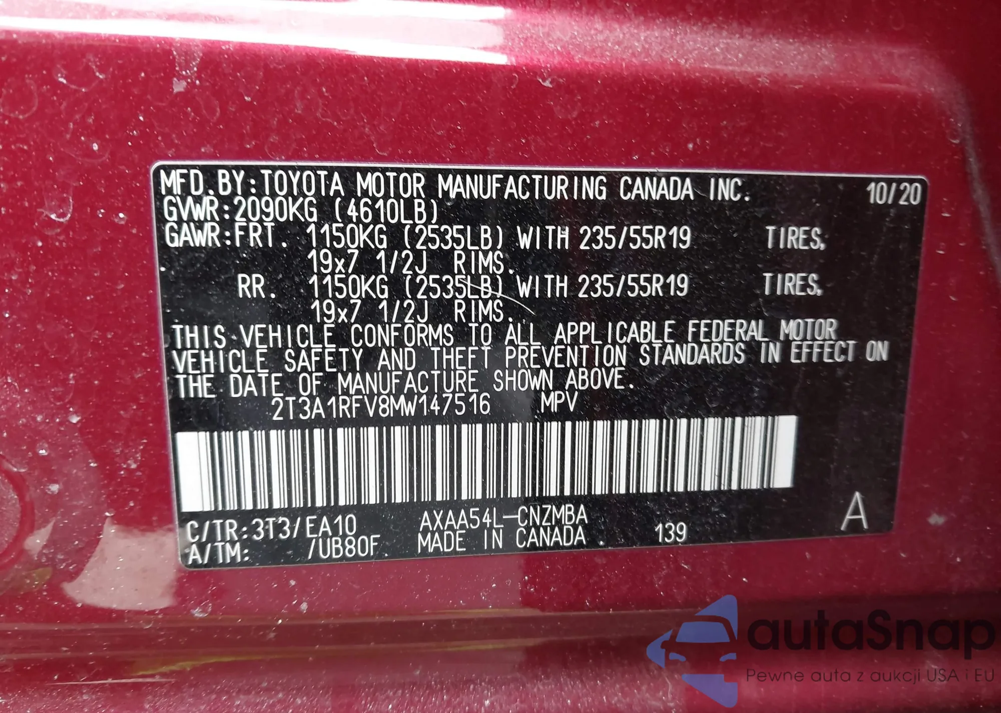 VIN: 2T3A1RFV8MW147516