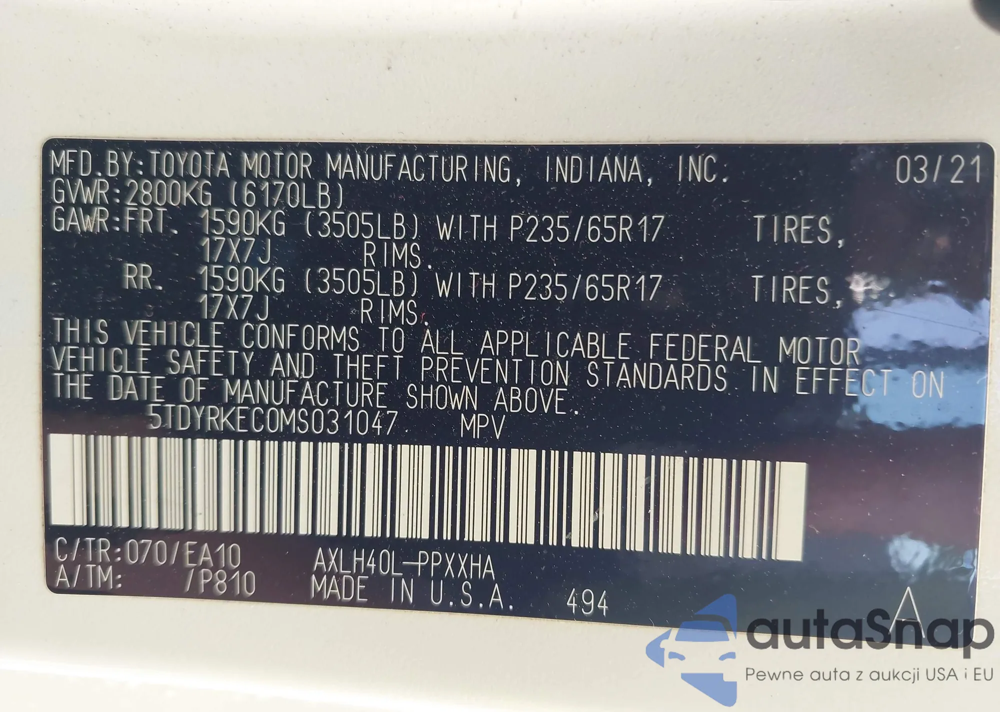 VIN: 5TDYRKEC0MS031047