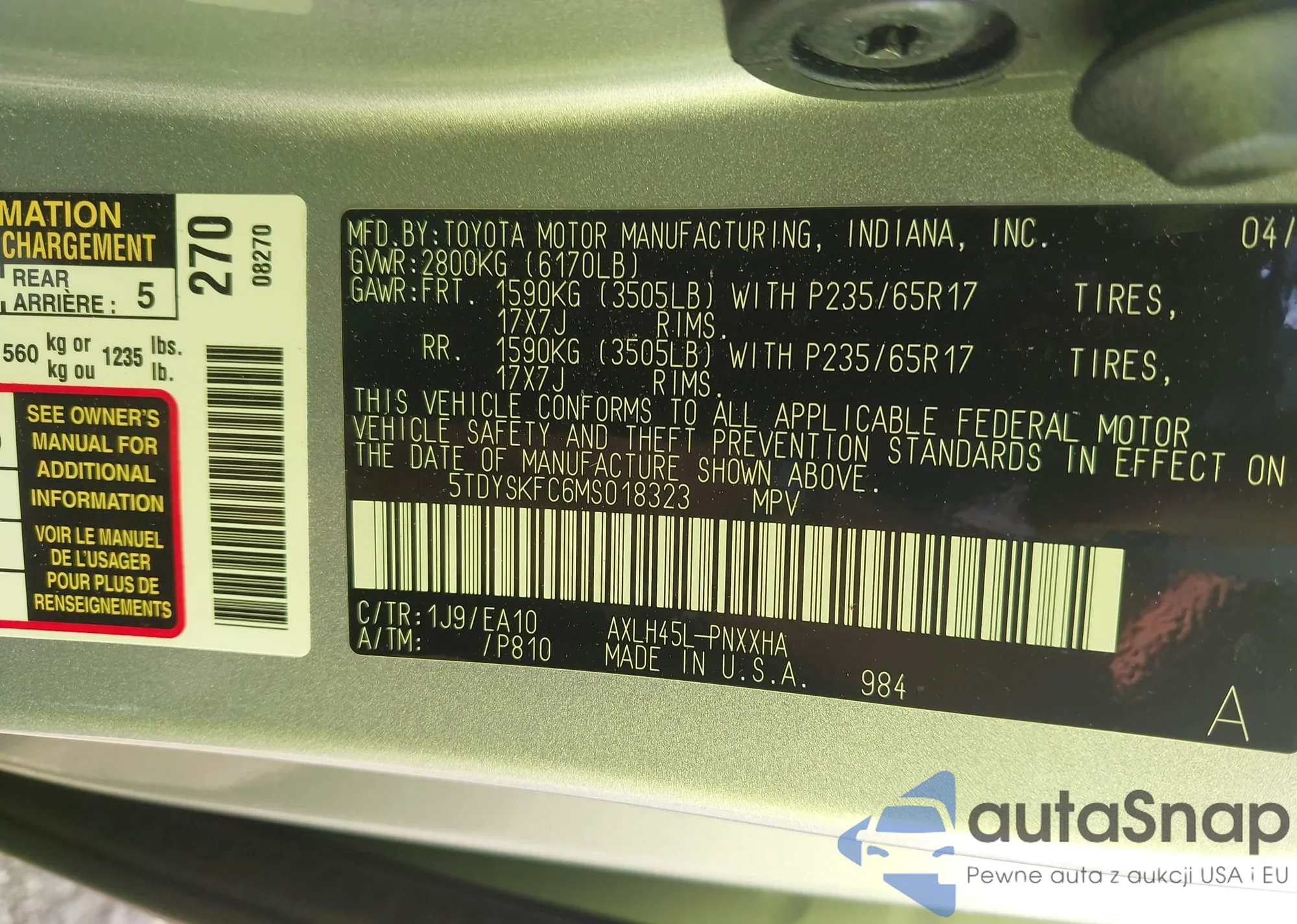 VIN: 5TDYSKFC6MS018323