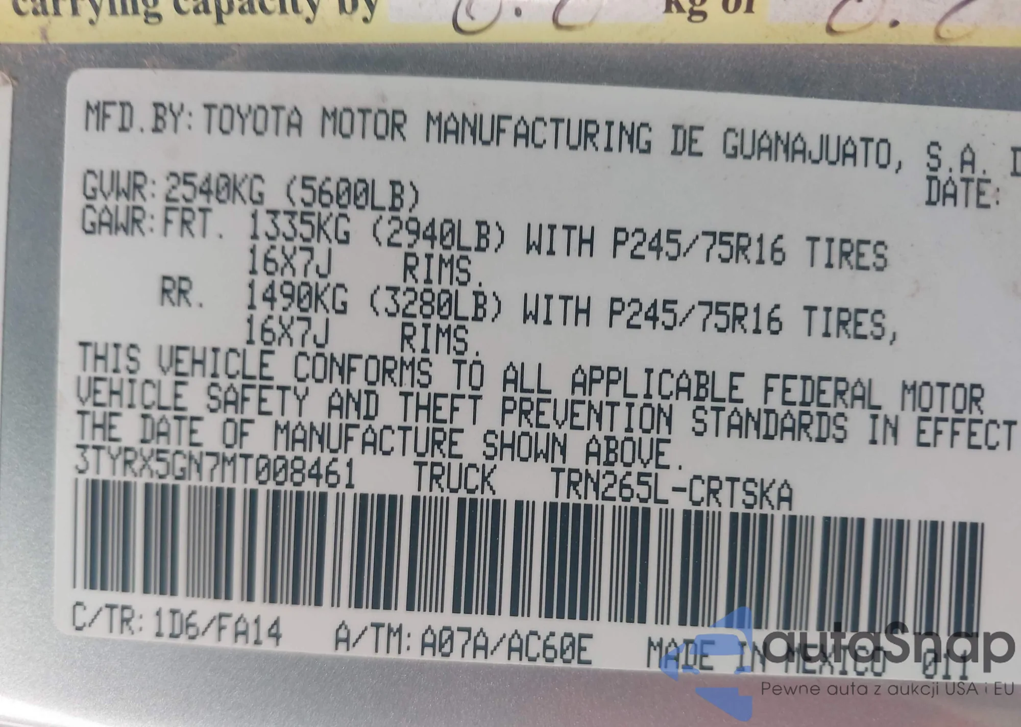 VIN: 3TYRX5GN7MT008461