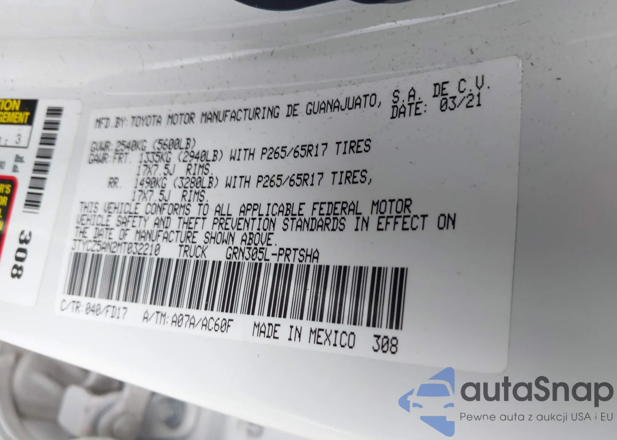 VIN: 3TYCZ5AN2MT032210