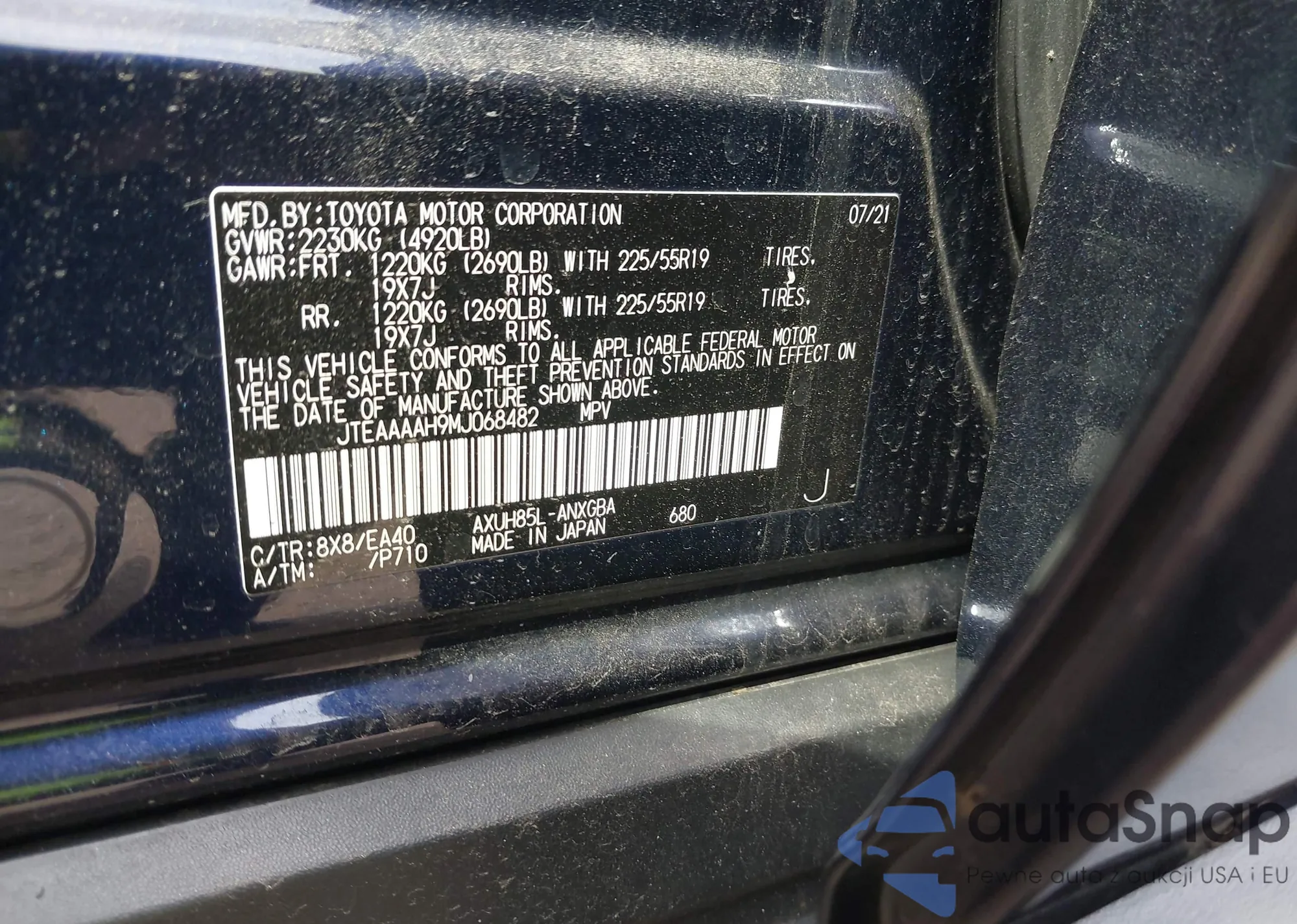VIN: JTEAAAAH9MJ068482