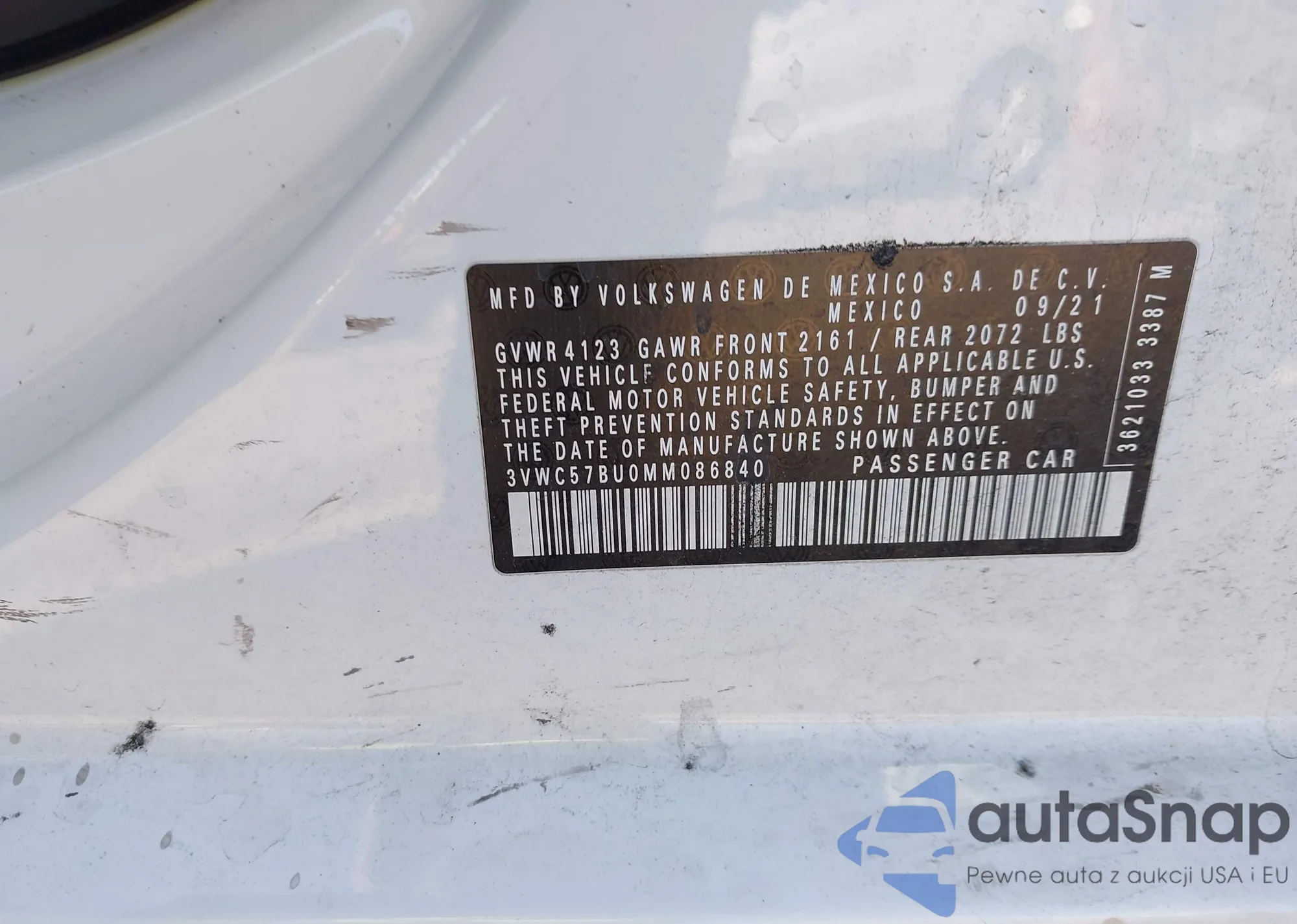 Автомобиль Volkswagen Jetta 2021 (VIN 3VWC57BU0MM086840) ранее не участвовал в торгах. Документы чистые, пробег соответствует или ниже среднего по рынку. Продаётся страховой компанией — рекомендуем покупку. Доставка в порт займет около 6–8 недель.